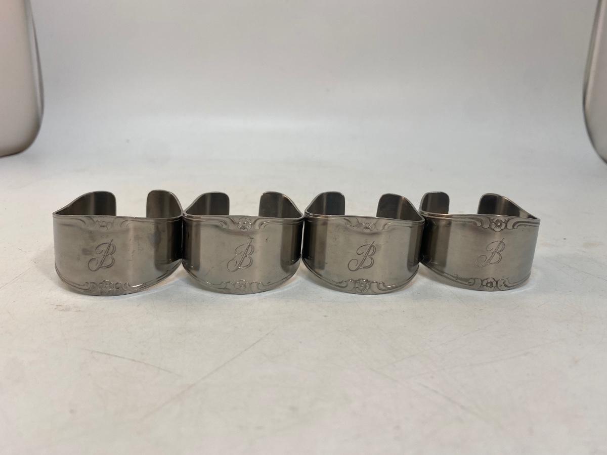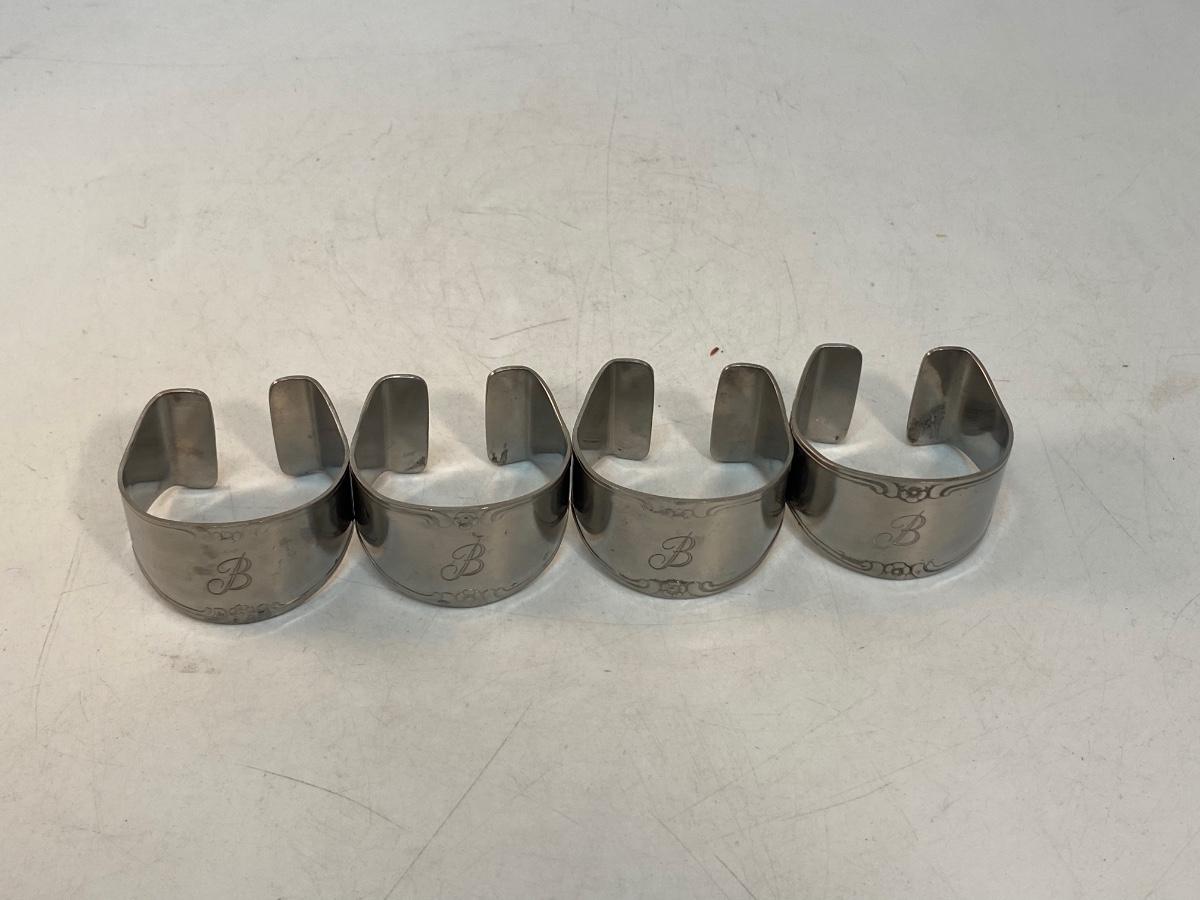 Set of 4 "B" Monogrammed Napkin Rings. Good condition.