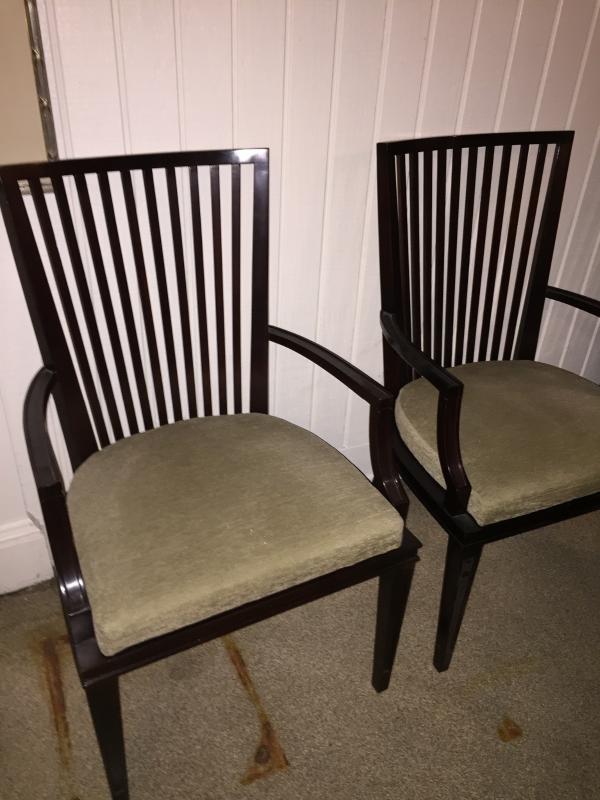 Great condition. Nicely constructed. Baker Arm Chairs (set of 4). 37.5" tall, 23" wide, 22" deep.