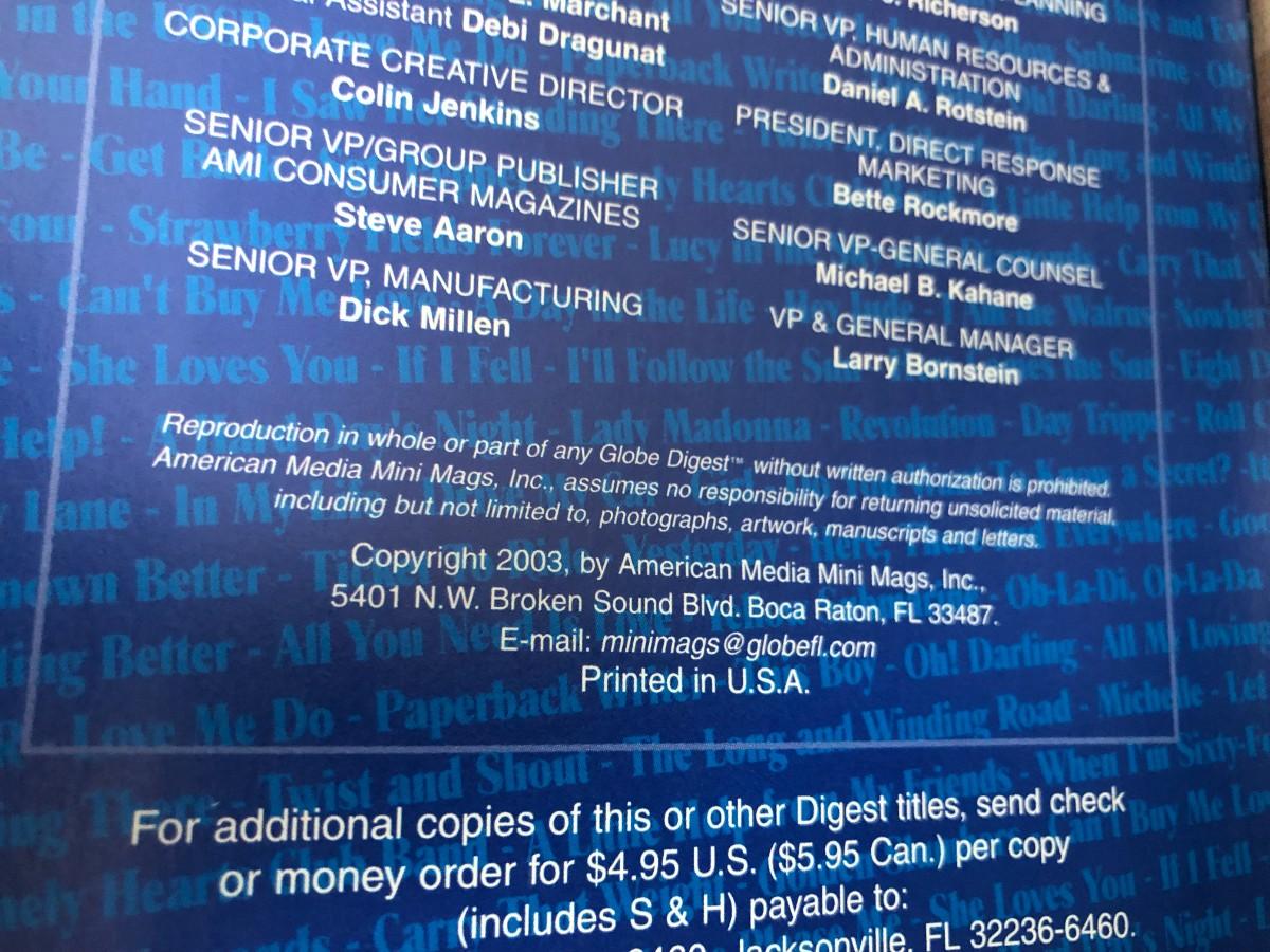 Set of 4 Beatles Holographic 40th Anniversary Tribute Globe Special Digests Magazines