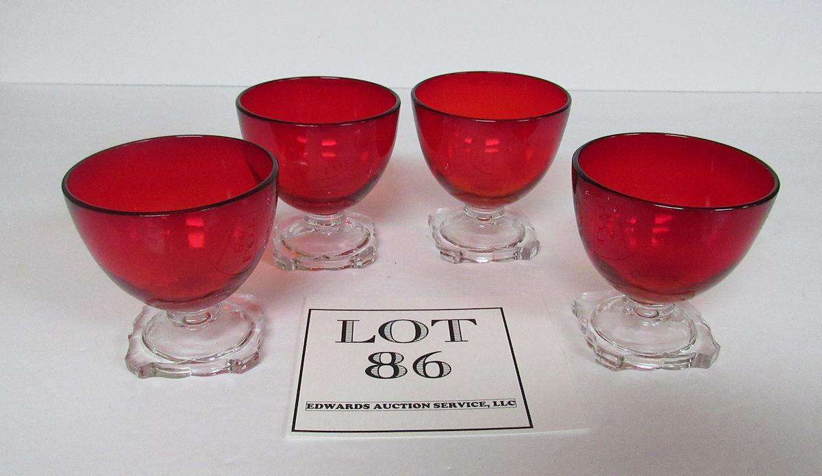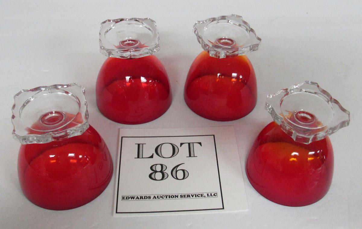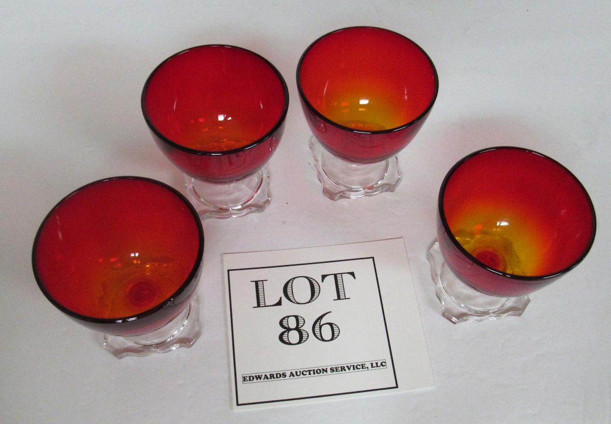 Set of 4 Beautiful Little Amberina and Clear Cocktail Glasses
