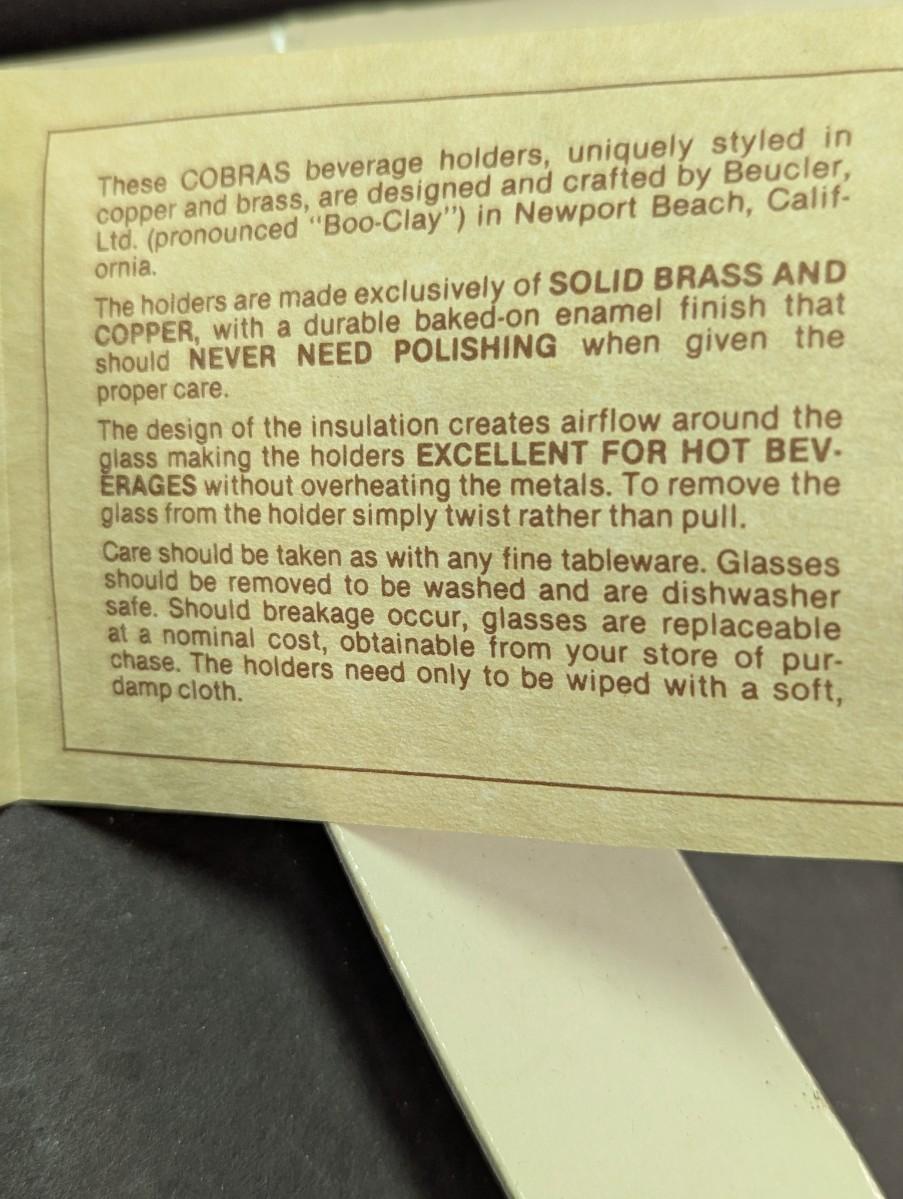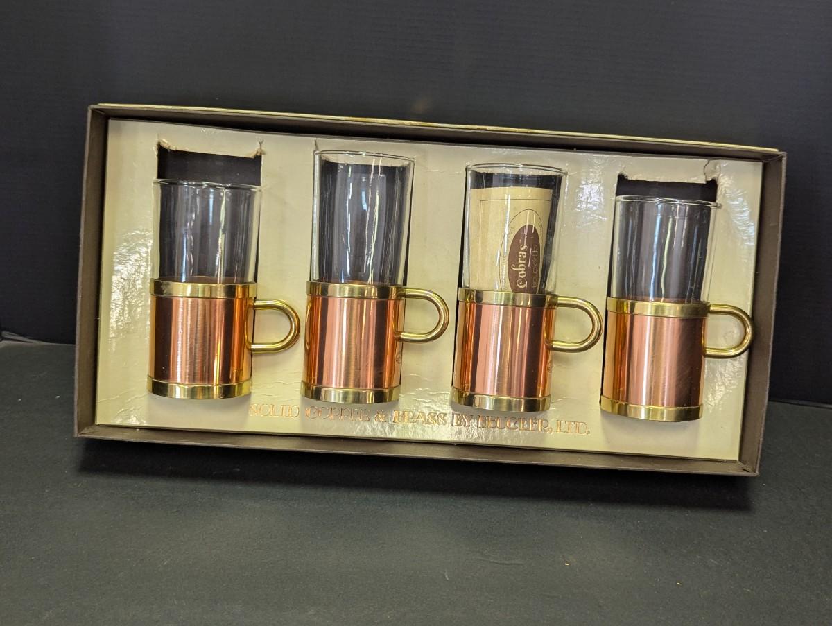 Set Of 4 Beucler Solid Copper Brass Cobras Coffee Beverage Holder Cup Mug