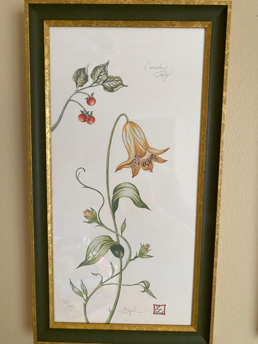 Set of 4 botanical framed, signed and numbered prints. 11 x 20 each. Cannot read signature