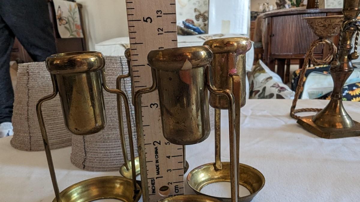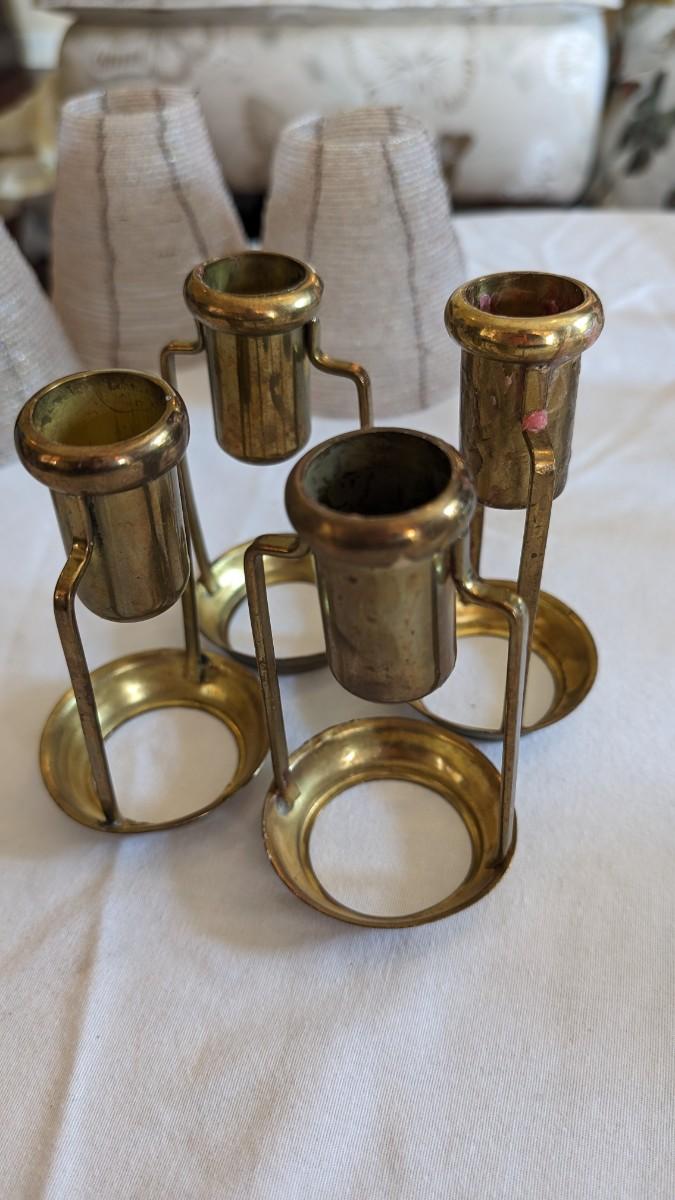 This is a set of 4 brass candle shade holders which are approximately the same height with beaded shades.
