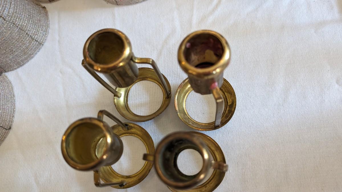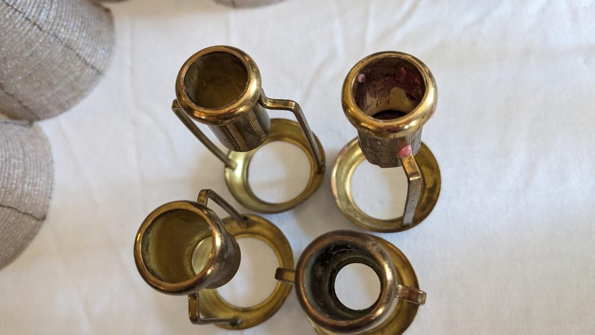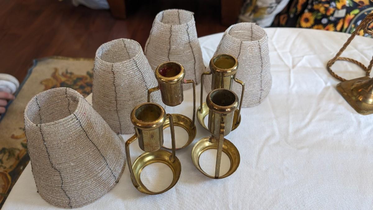Set of 4 Brass Candle Shade Holders with Beaded Shades