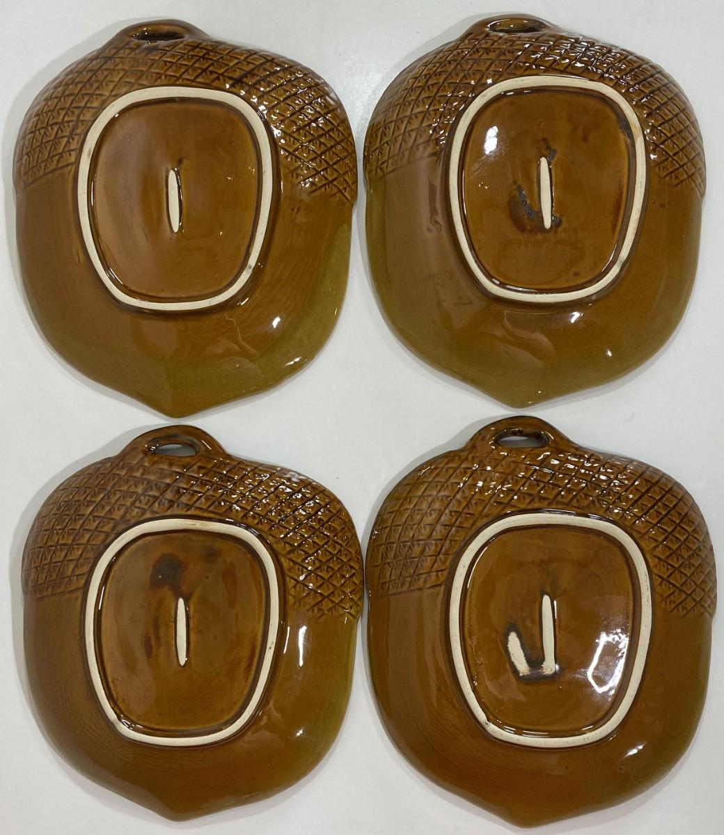 Set of 4 Brown Ceramic Acorn Shaped 7.25" X 6.25” Candy / Nut Dishes. Leaves