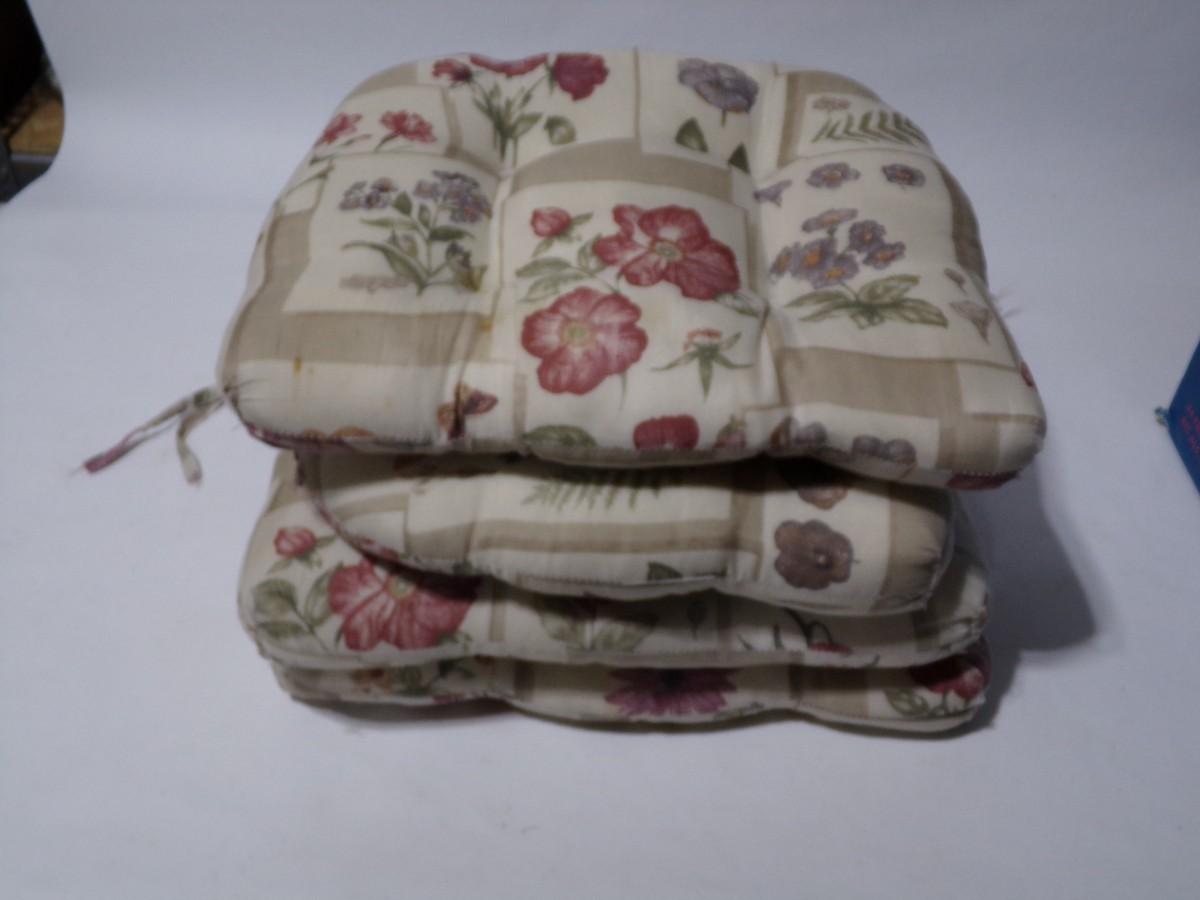 Set of 4 chair cushions, some ties missing.