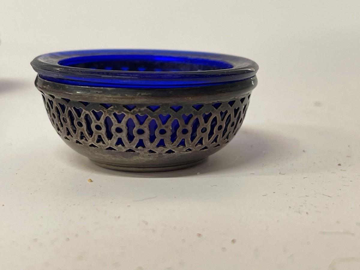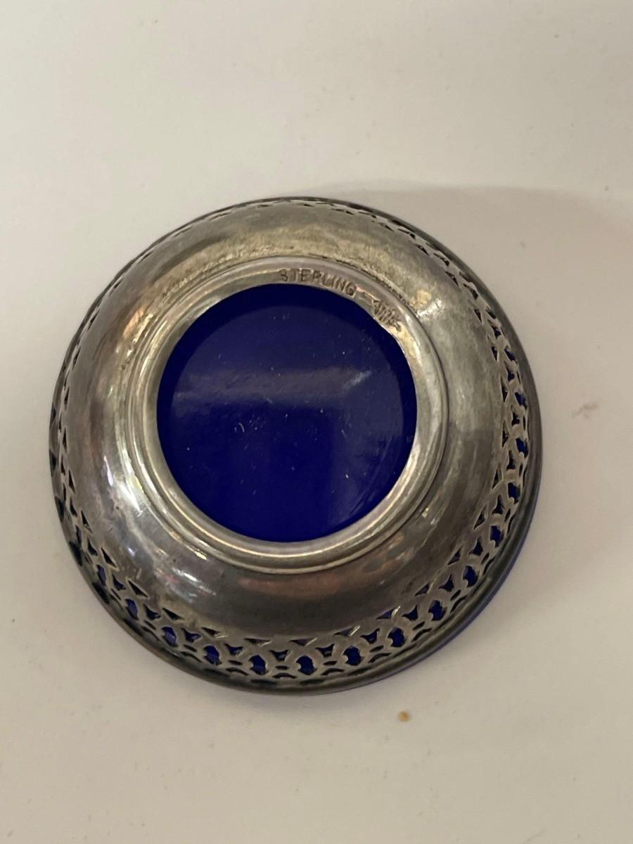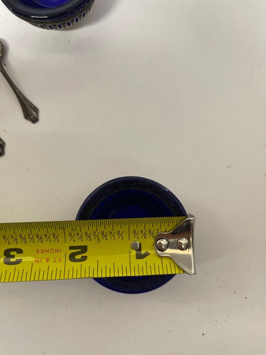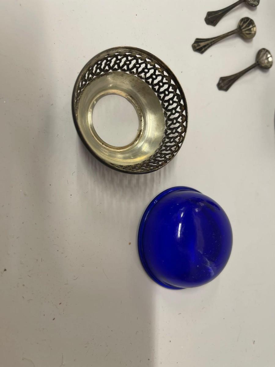 Set of 4 Cobalt and Sterling Salt Cellars with 3 Spoons