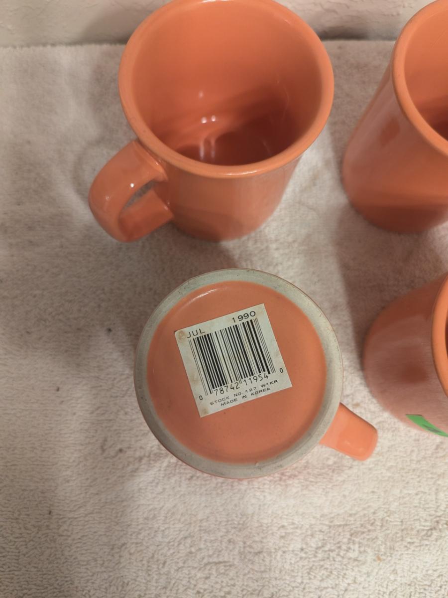 set of 4 coffee cups, peach colored