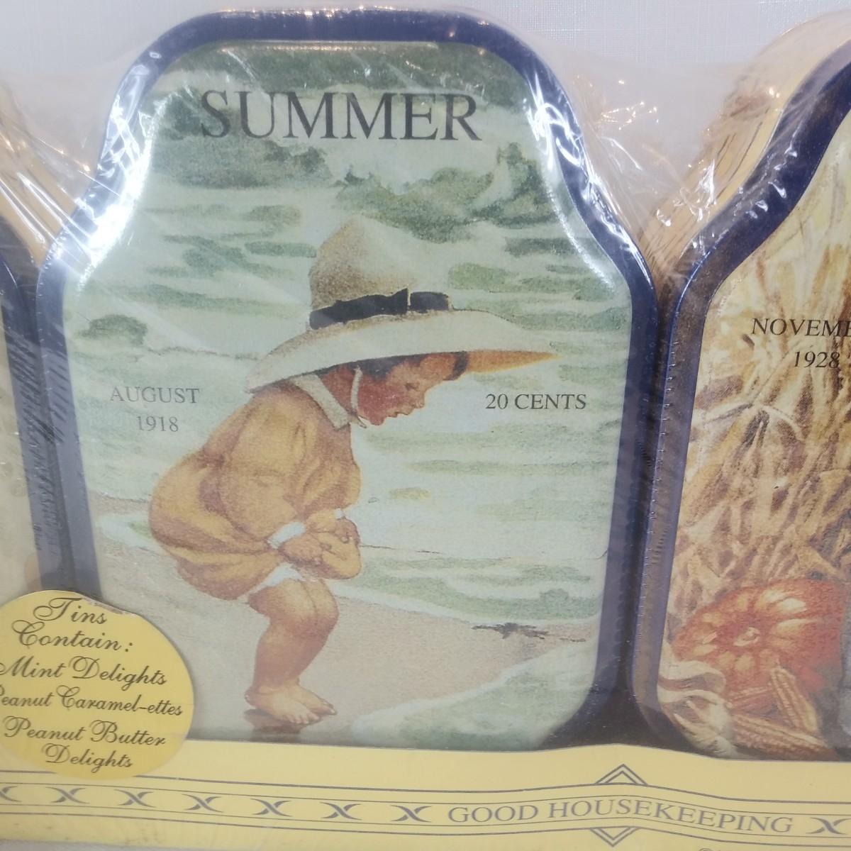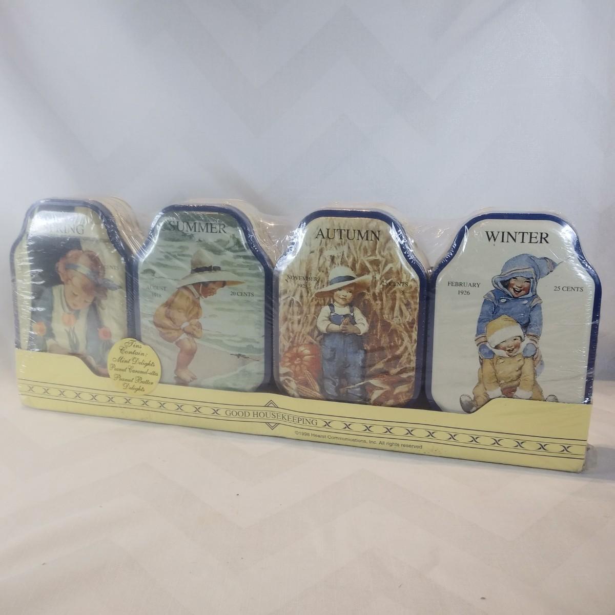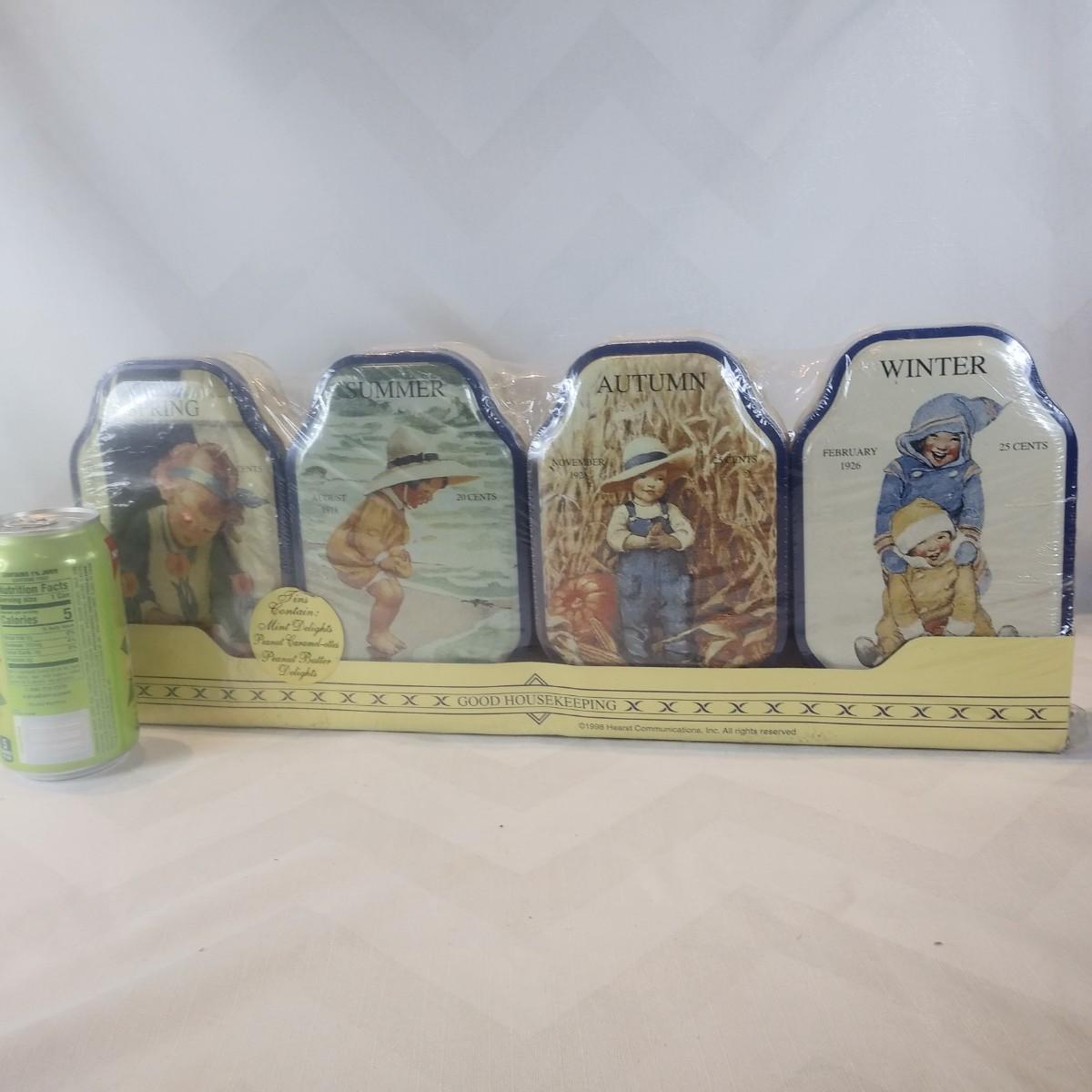 This auction lot is for a Boxed set of 4 Collectible Tins. Still sealed in original packaging. The tins contain various candies. Dated 1998. The decision to eat the candy is left to the highest bidder - the value are the tins.