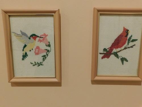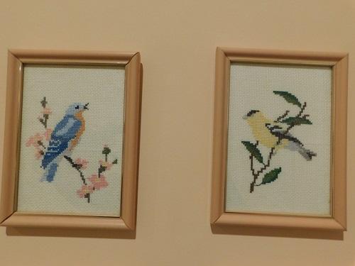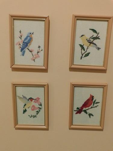 Set of 4 Colorful Birds Cross Stitch Hanging Framed Wall Decor 8"x6" Each