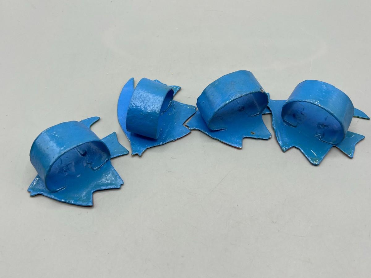 Set of 4 Colorful Painted Metal Art Tropical Fish Napkin Holder Rings