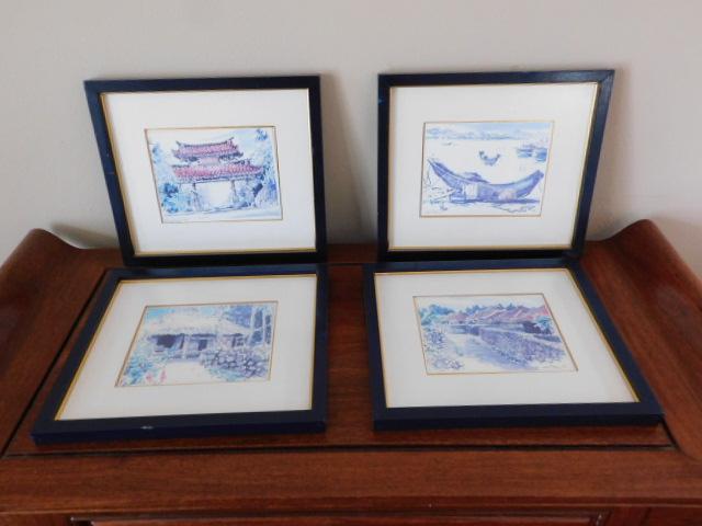 Set of 4 Colorful Prints of Asian Scenes by Akira T.