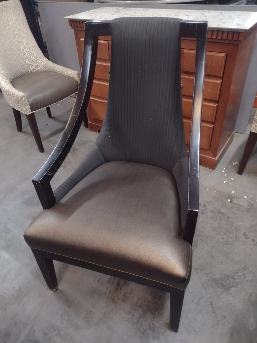Set of 4 Commercial Grade Bow Arm Parlor Chairs has some wear and scratches to the arms as shown.