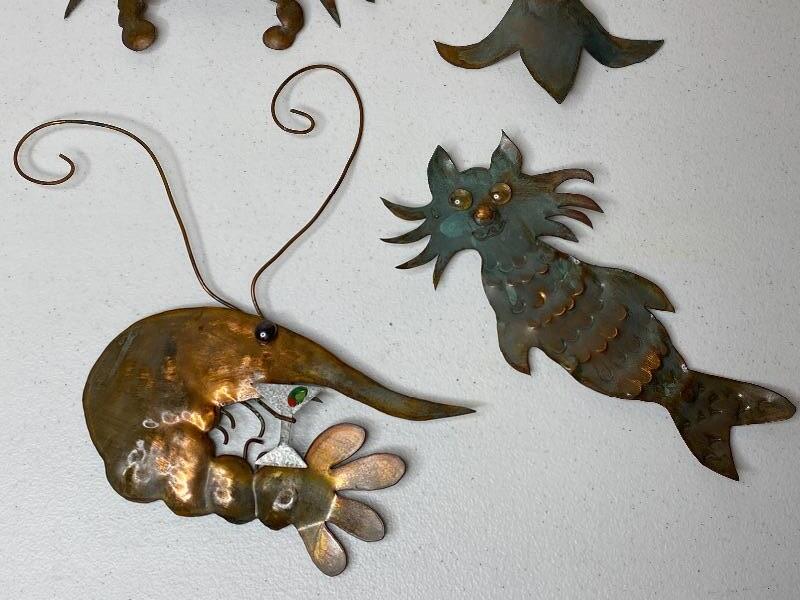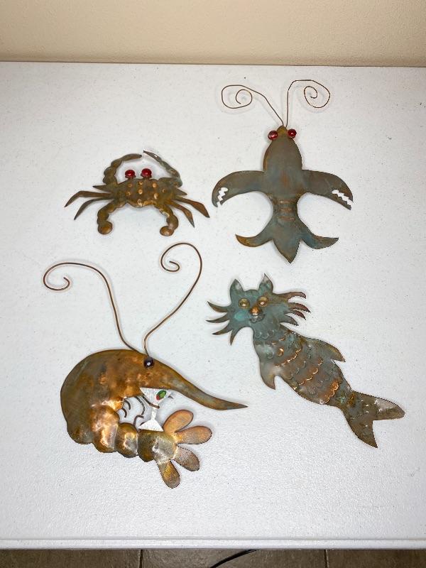 Set of 4 Copper Seafood Wall Art