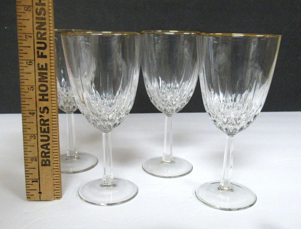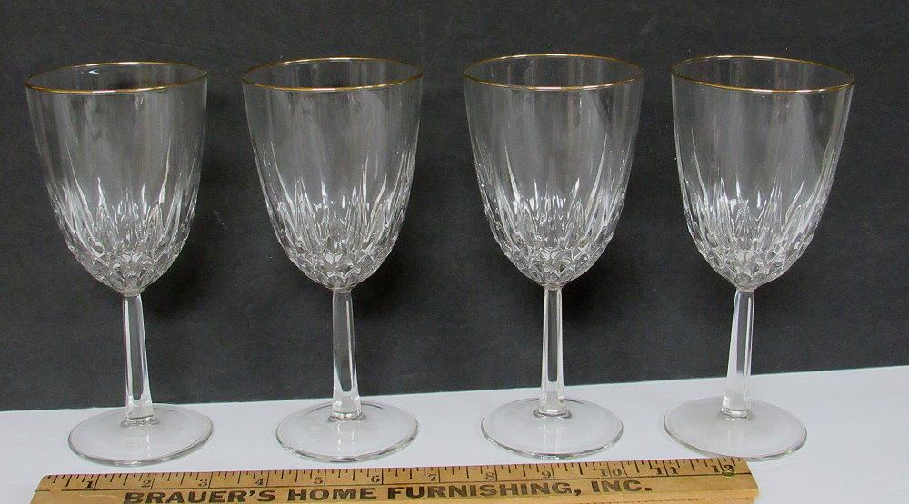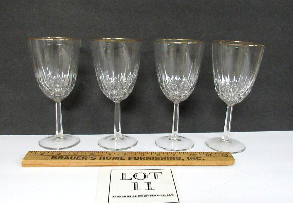 Set of 4 Crystal Goblets With Gold Rim