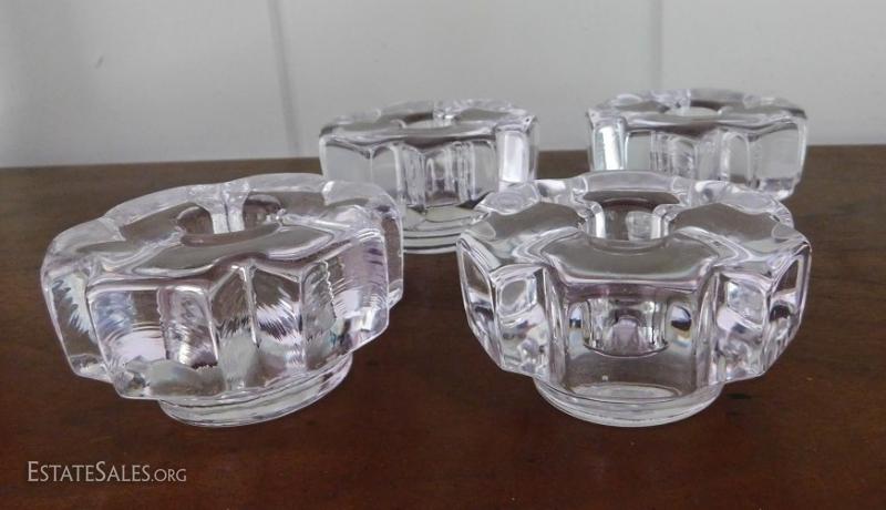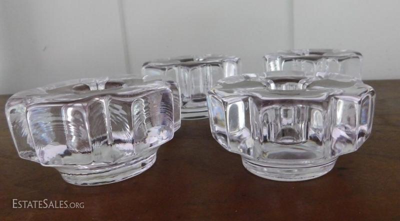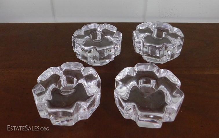 Set of 4 excellent condition Orrefors Swedish candle holders for candle sticks. Shipping Available.