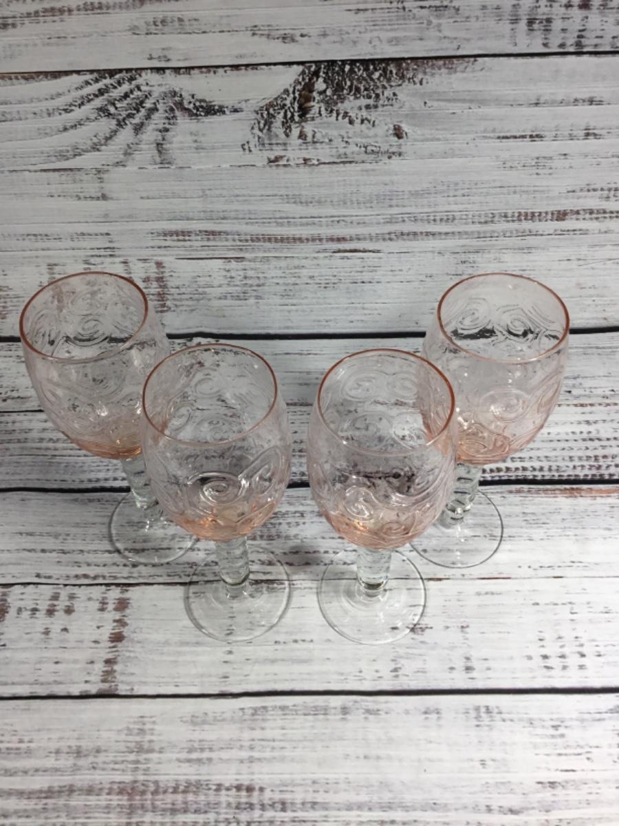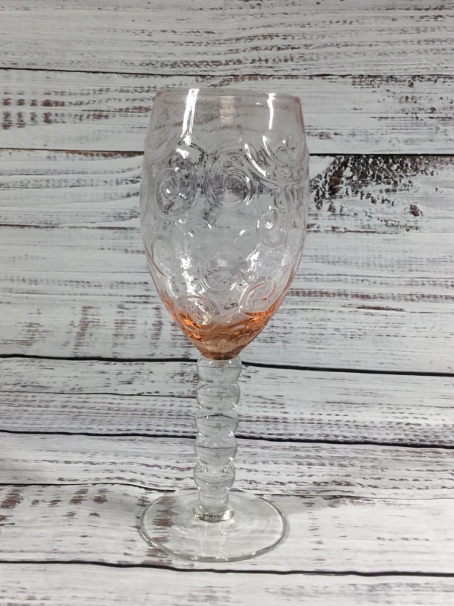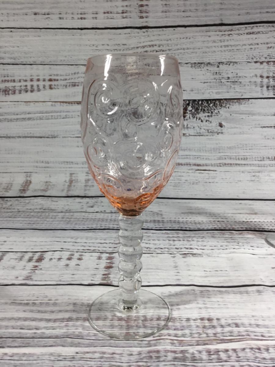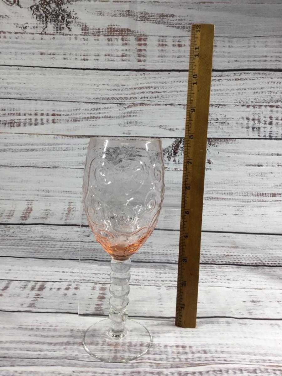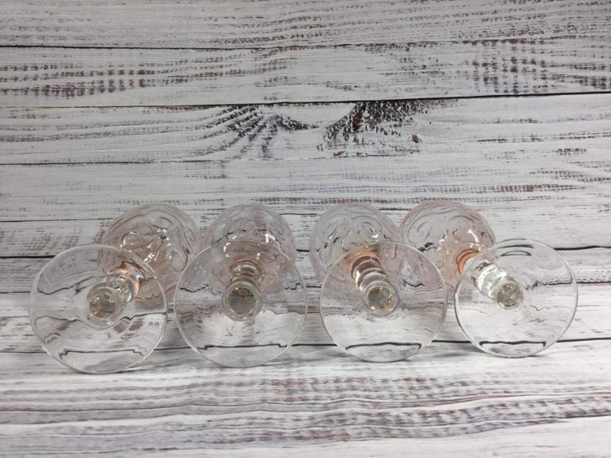 There is a scratch on one of the wine glasses. All of them are in good condition. Some have air bubbles on the bottom. All are approximately 8” tall.