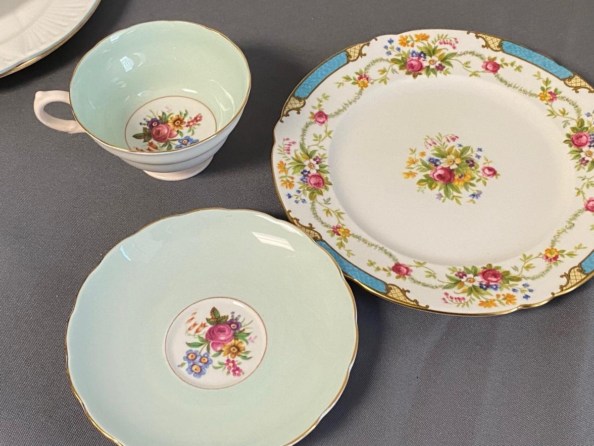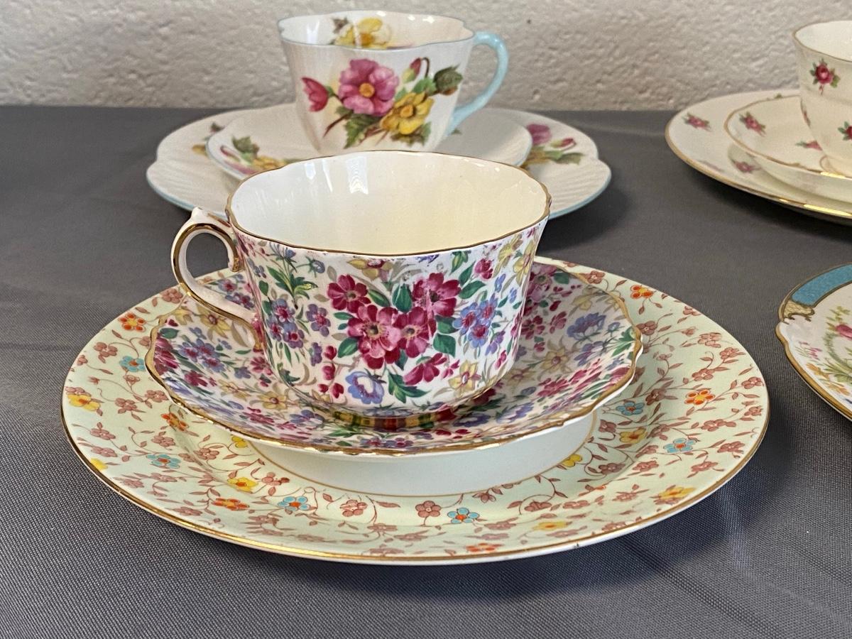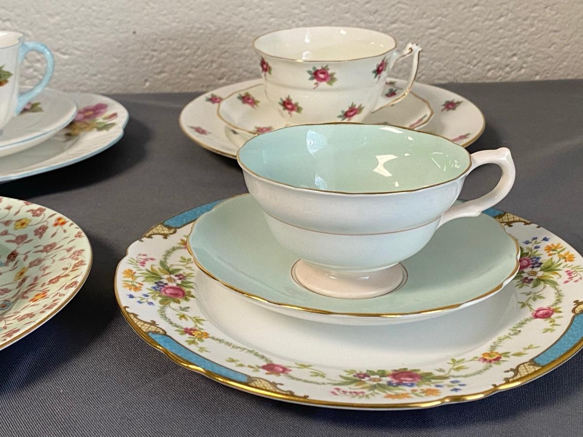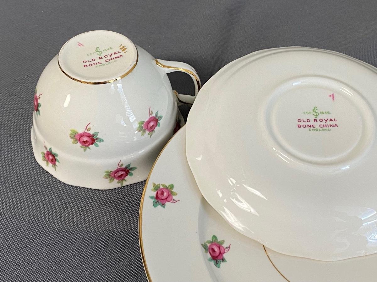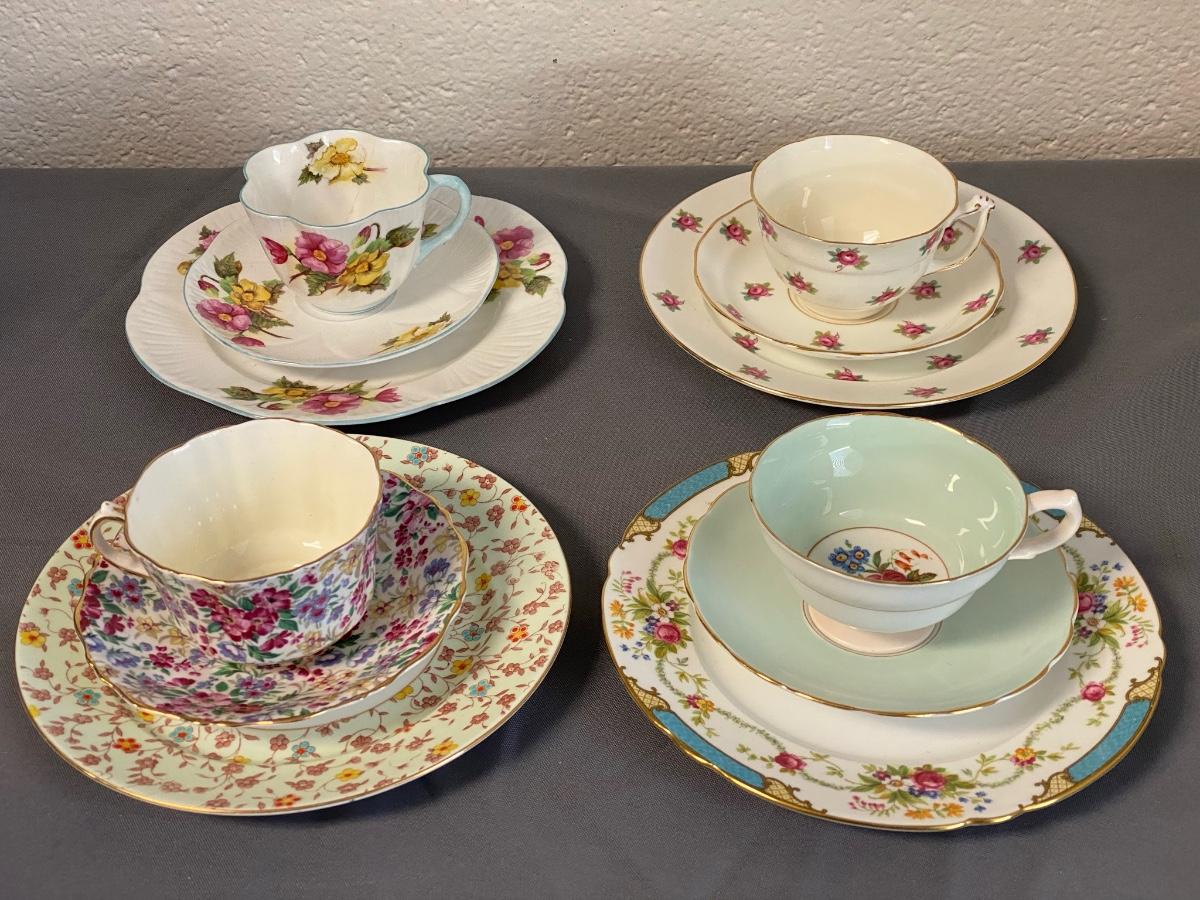 Set of 4 Cups, Saucers & Plates, Old Royal Bone China, Grosvenor China, & Shelley China