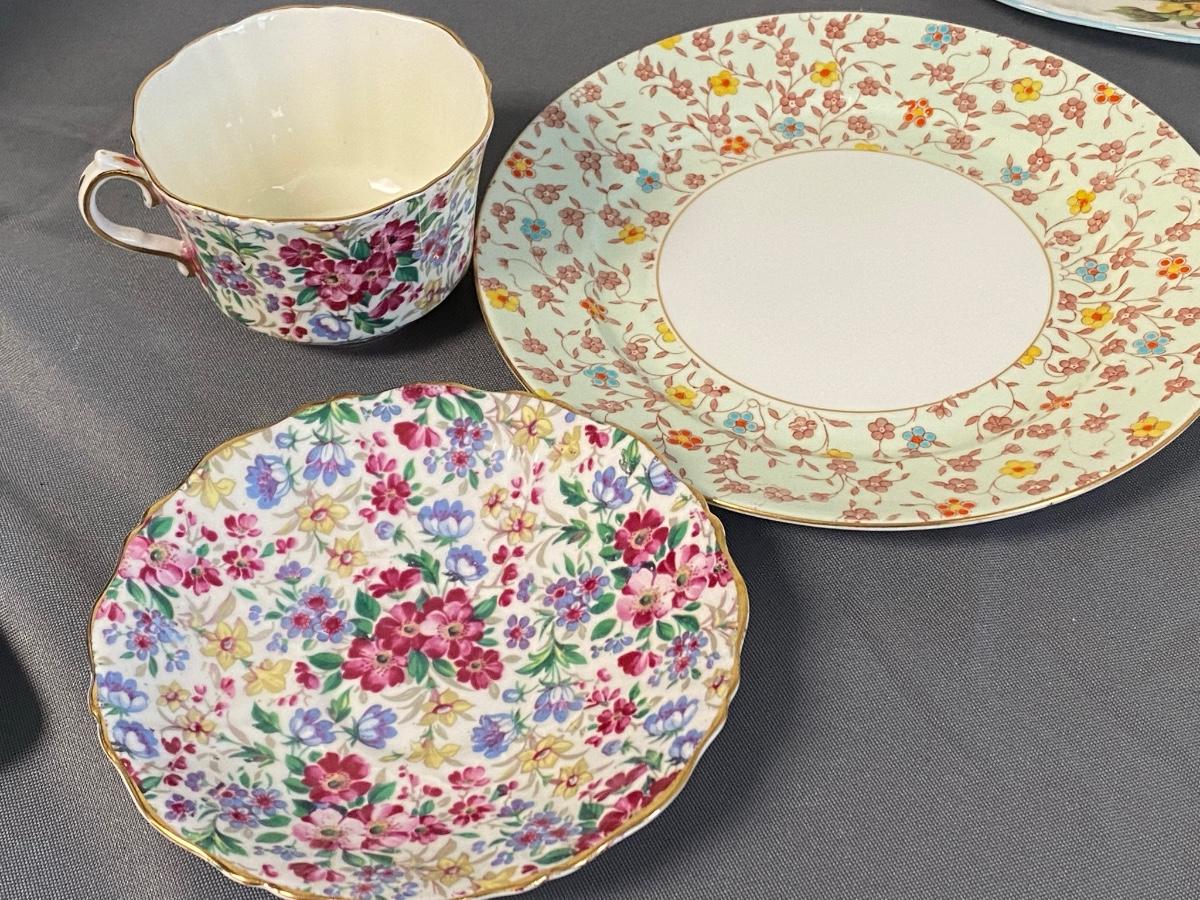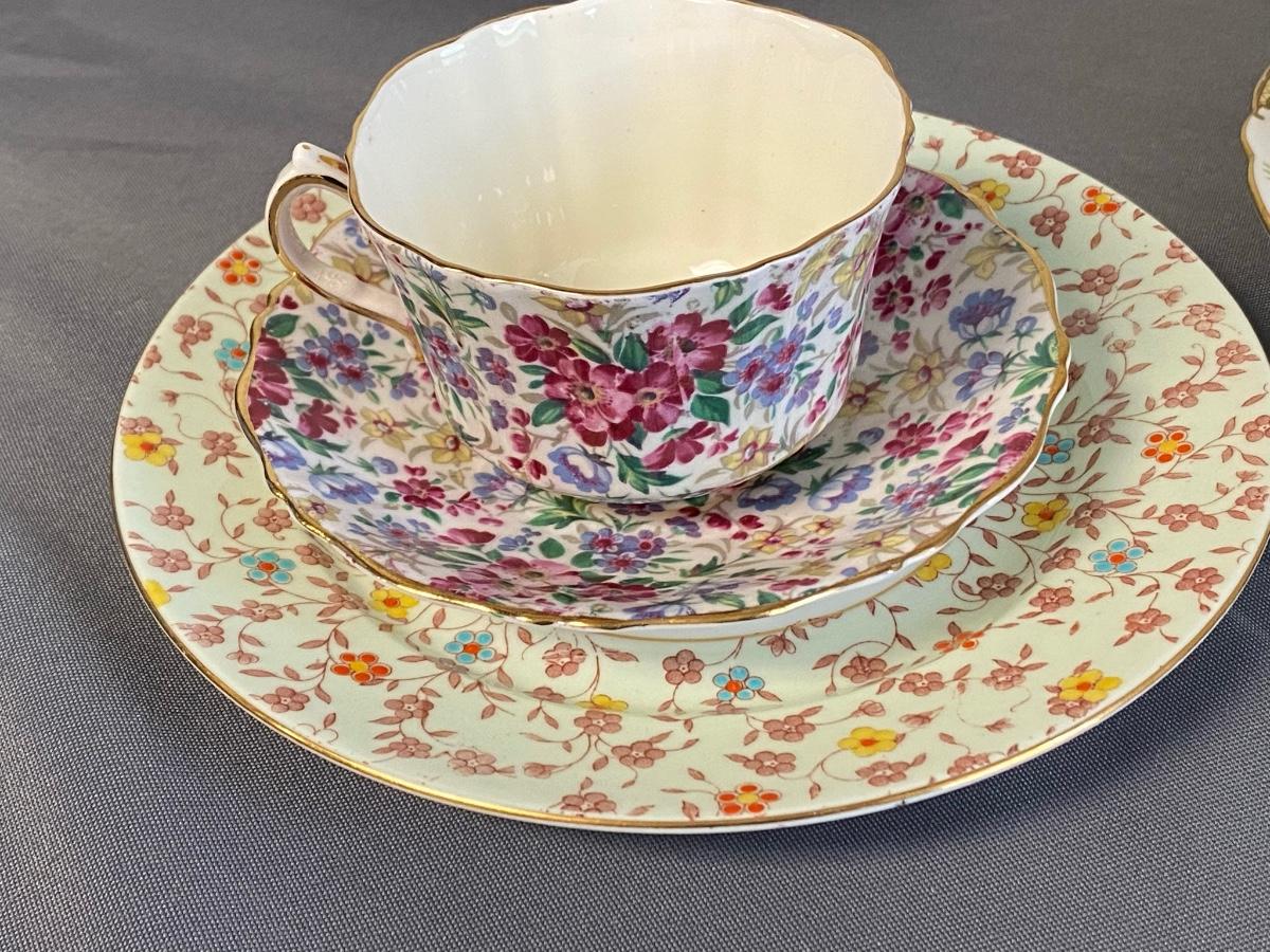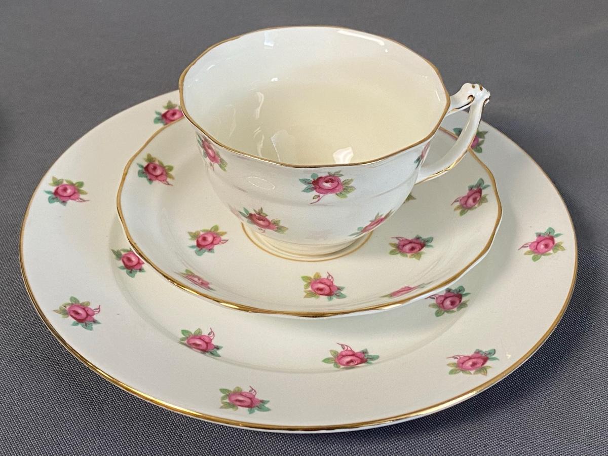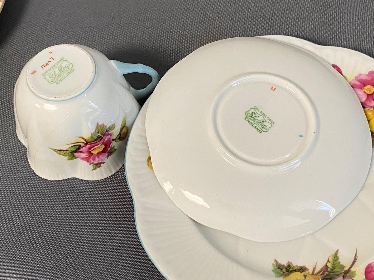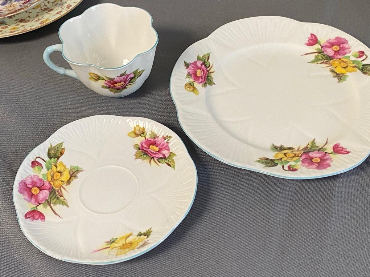 Set of 4 Cups, Saucers & Plates, Old Royal Bone China, Grosvenor China, & Shelley China