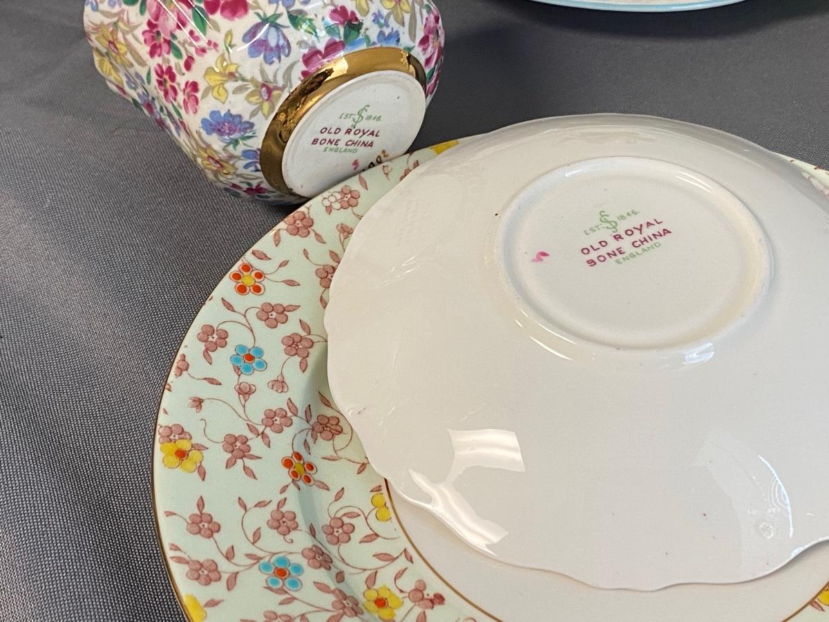 Set of 4 Cups, Saucers & Plates, Old Royal Bone China, Grosvenor China, & Shelley China,