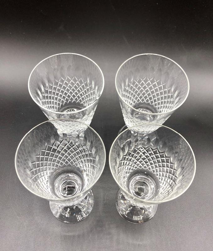 Set of 4 Vintage,  Cut Crystal Stemware, water goblet / parfait, flat bottom, diamond and arrow pattern