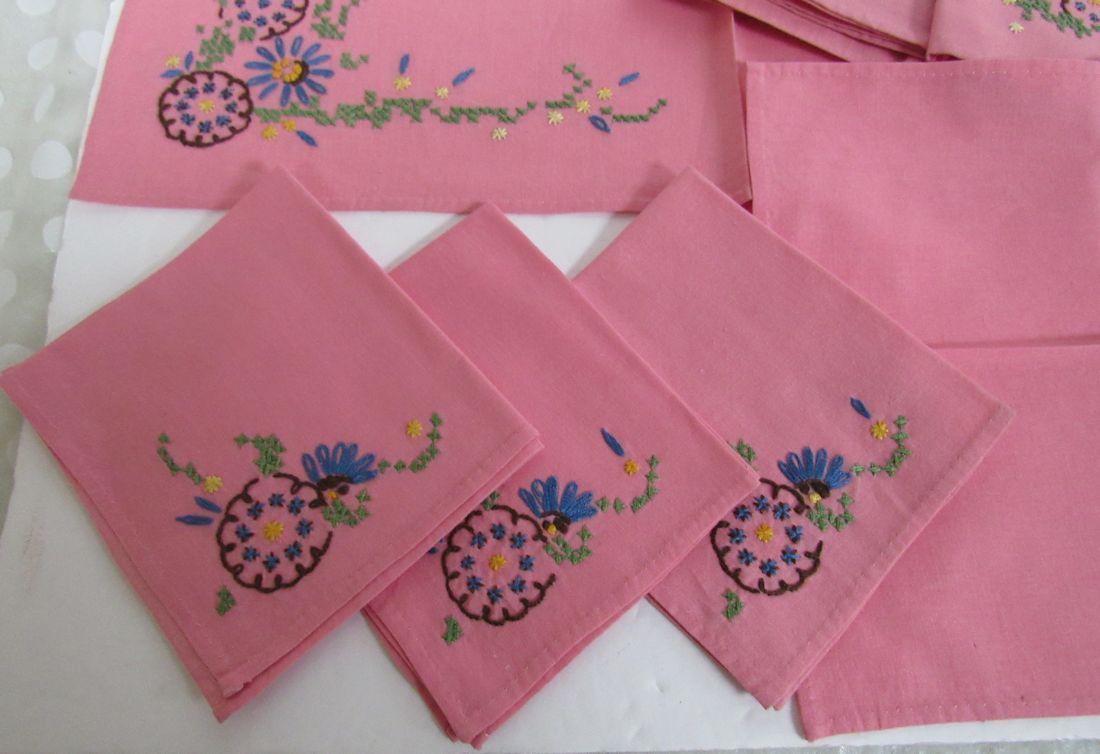 Set of 4 Dark Pink Placemats and Napkins, 4 Light Pink Napkins