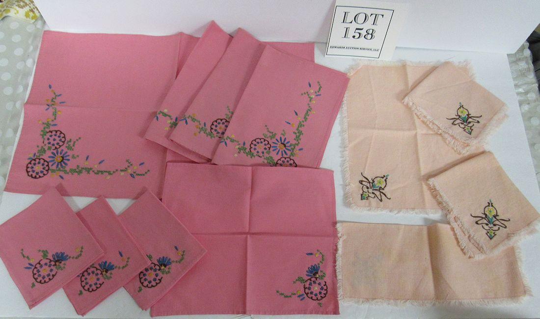 The dark pink set looks good. The light pink has 3 good one one stain. Shipping is available at shipping cost plus $5.00 handling fee on up to 6 lots, $10.00 handling fee on 7 or more lots or two boxes. $15.00 handling fee on 3 boxes. Helps cover shipping materials and labor cost.