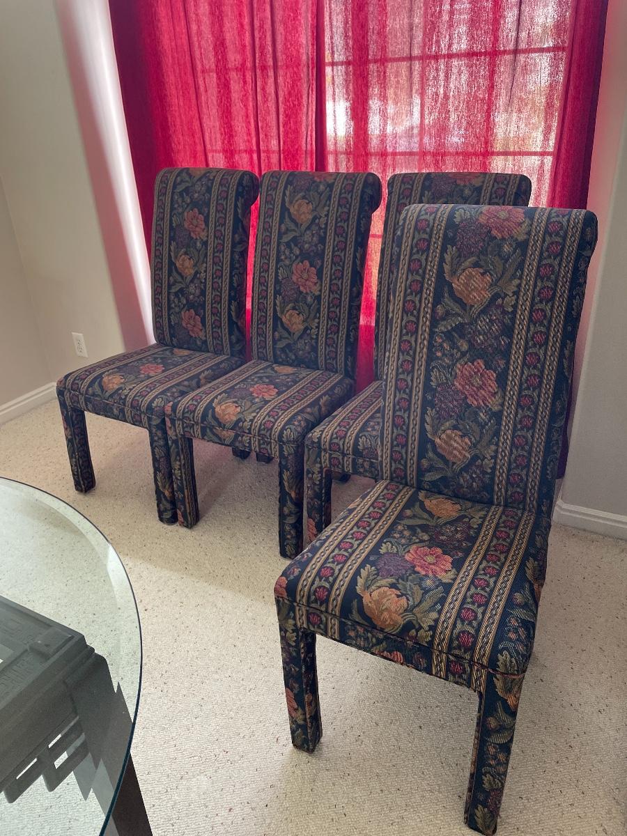 #1 Set of 4 Floral Fabric Covered Dining Chairs