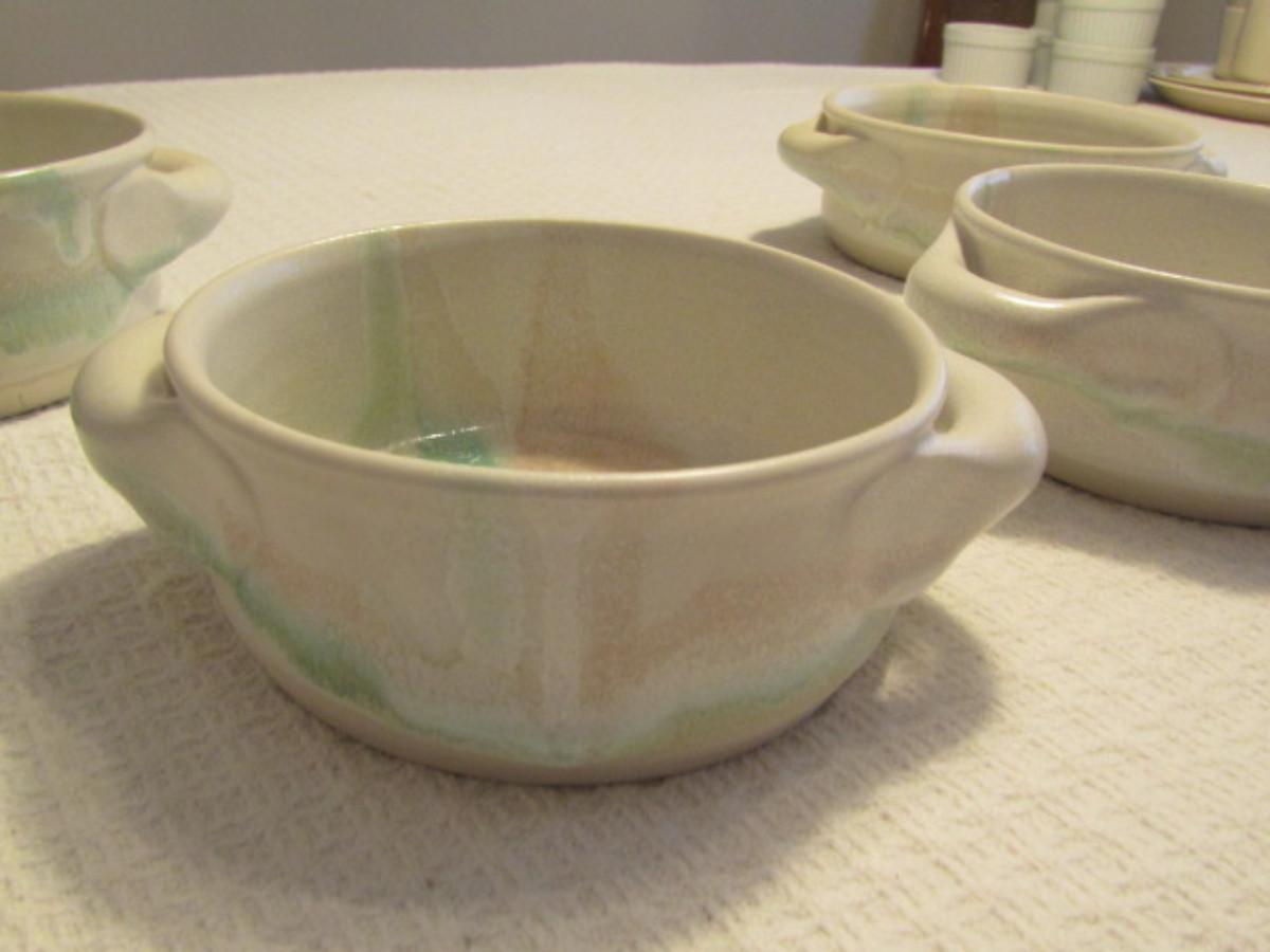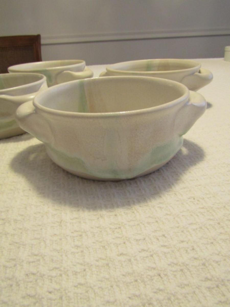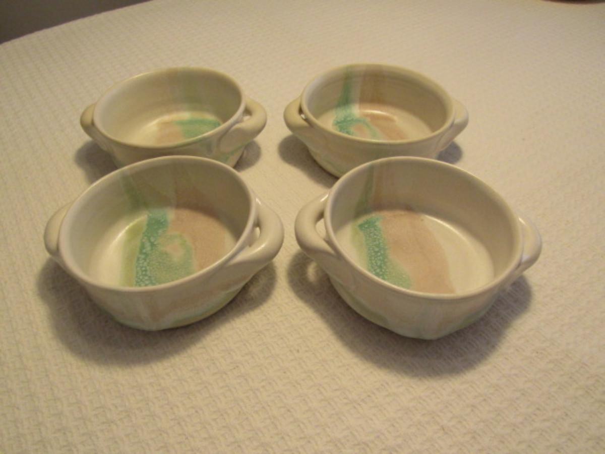 Set of 4 Glazed Pottery Bowls with Handles- Signed by Artist: Hartman