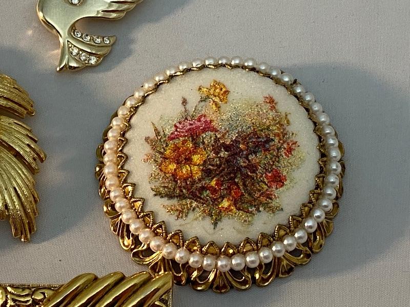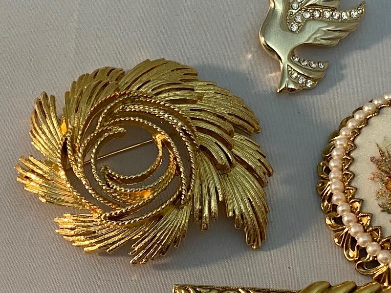 Nice mix of goldtone pins. Something for every occasion. The Dove is the only marked piece and it is from Monet.