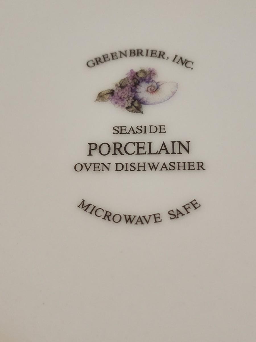 Greenbrier, Inc. Seaside pattern. Porcelain. Oven, dishwasher and microwave safe.