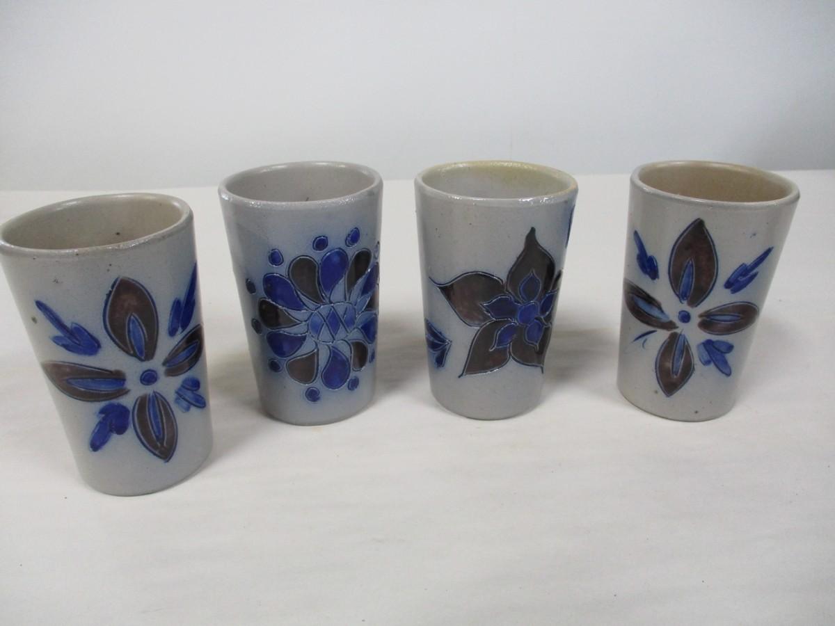 Set Of 4 Hand Painted Pottery Glazed Cups