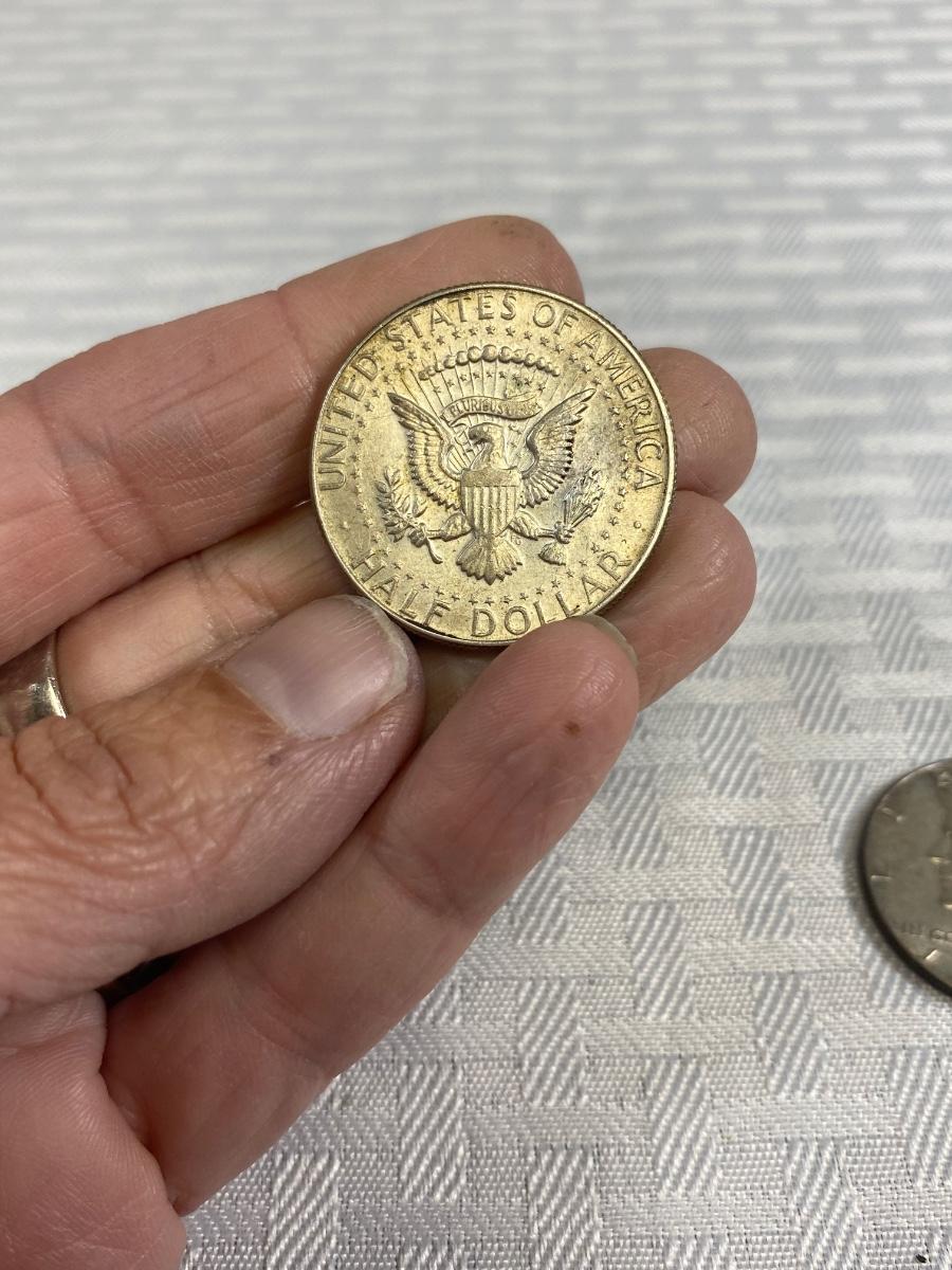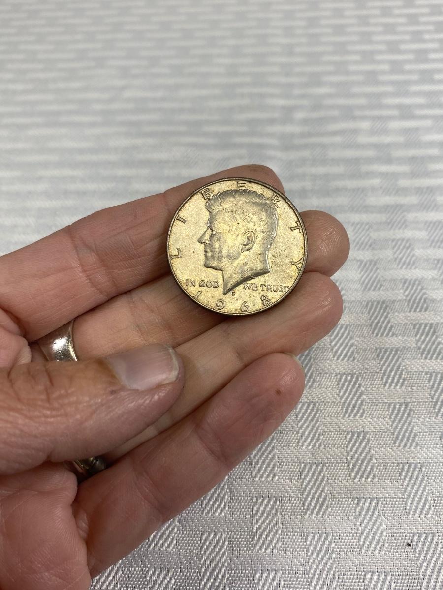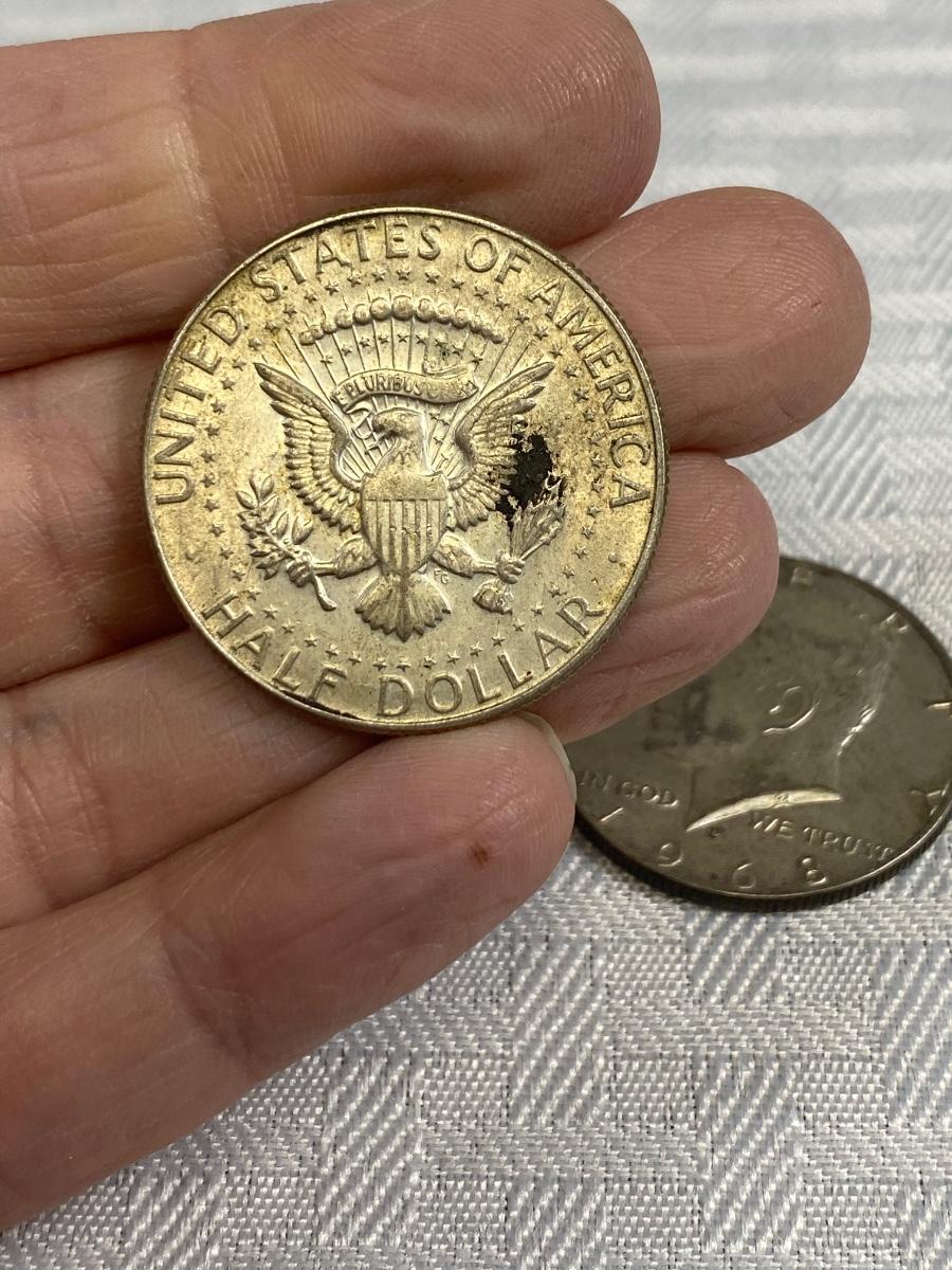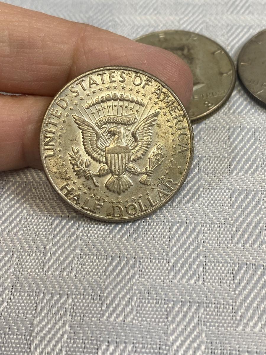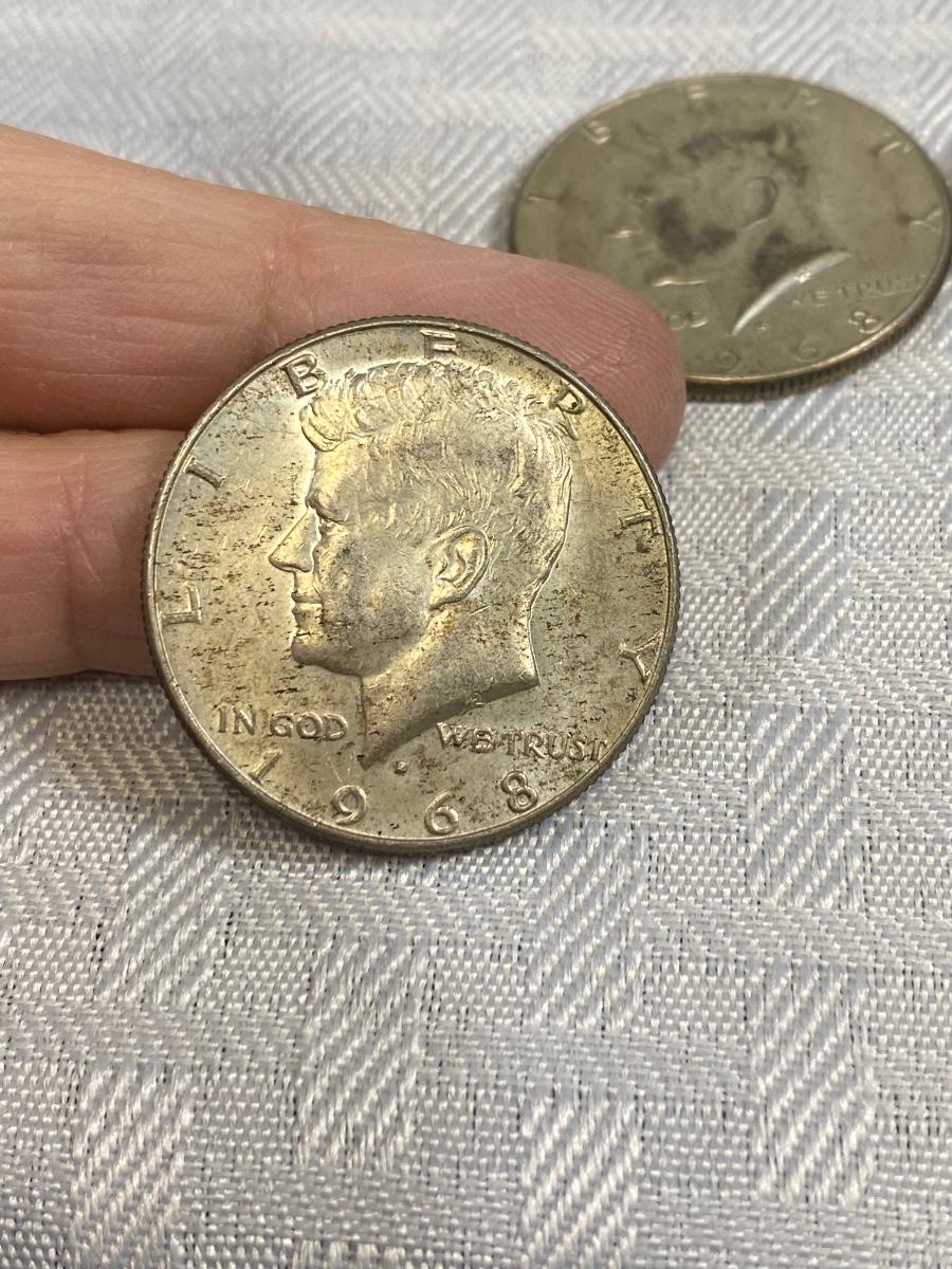 Set of 4 Kennedy Half Dollar 1969 1968 United States Coin Money. Discolor but in good, circulated condition, light wear.