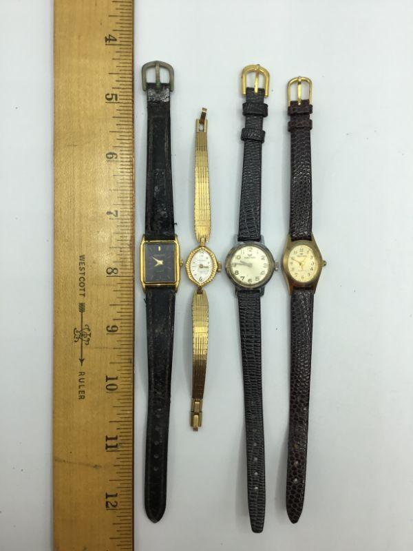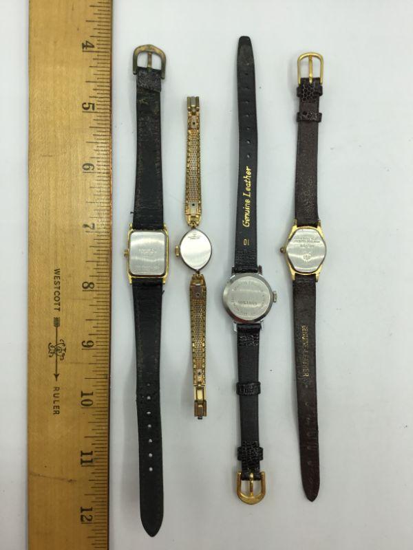Set of 4 ladies watches. Currently not running. Gruen and 3 Waltham watches. Previously owned.