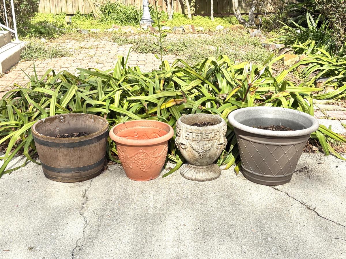 Set of 4 Large Flower Pots - One Cement Urn and Three Composite