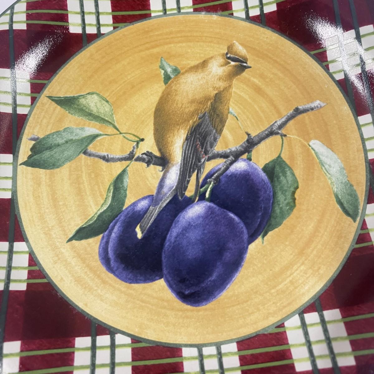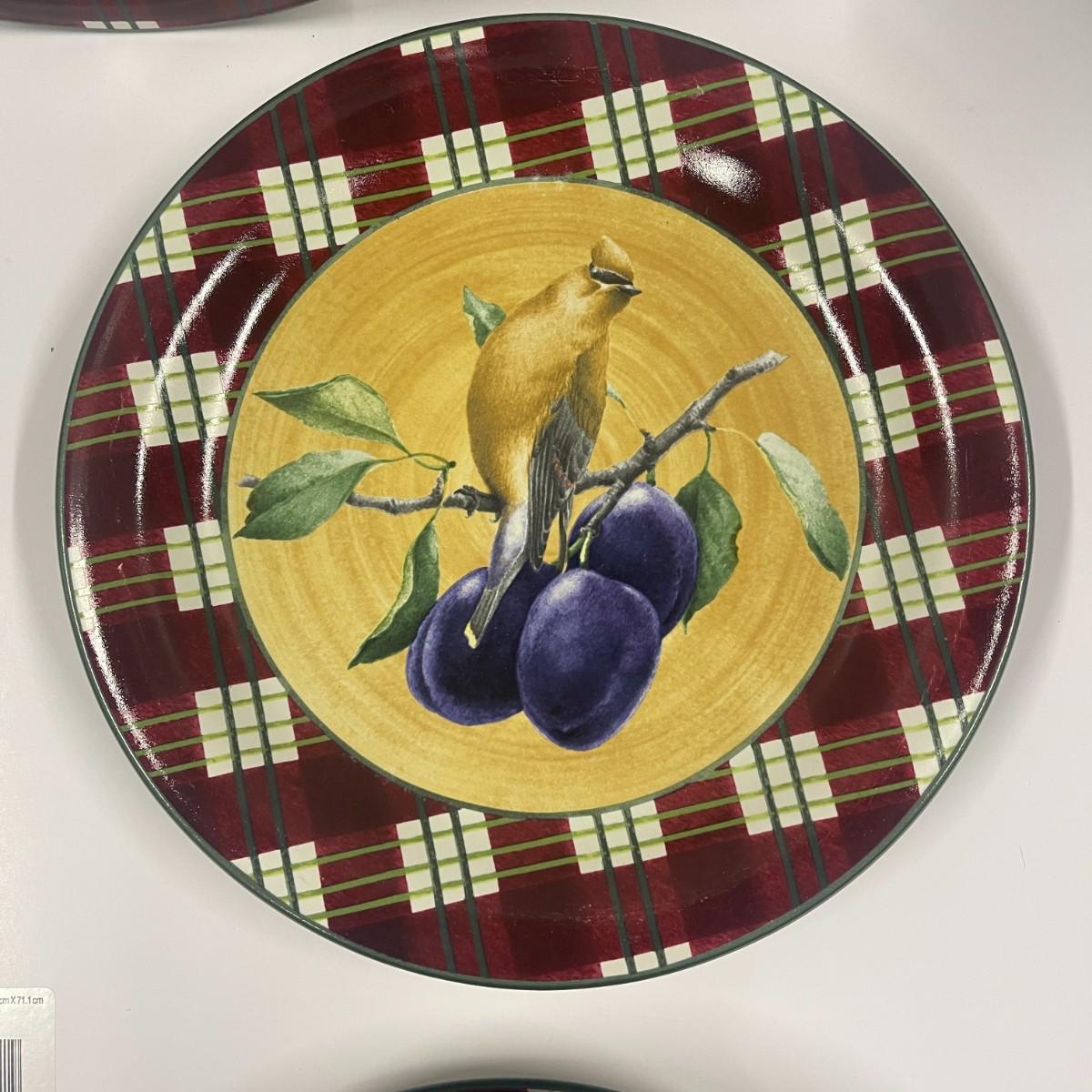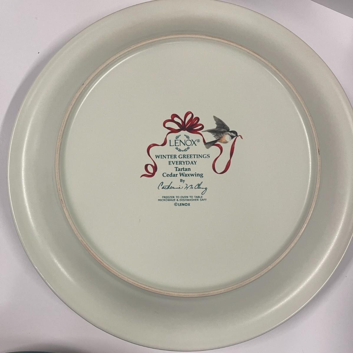 Set of 4 Lenox Winter Greetings Everyday Tartan Cedar Waxwing Dinner Plates