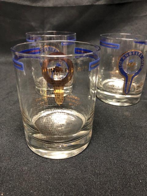 Set of 4 Los Angeles Open 50th Anniversary drink glasses. Do have some wear to the design from use and age. From 1976.