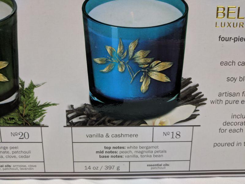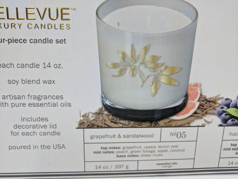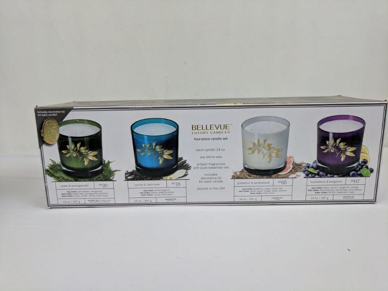 Set of 4 Luxury Candles, 2 Burned Slightly, Bellevue, Each Candle 14 oz - New