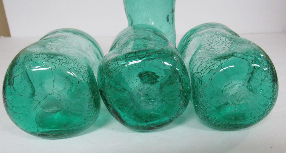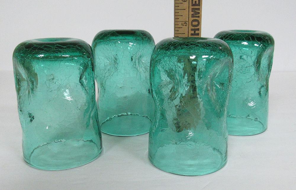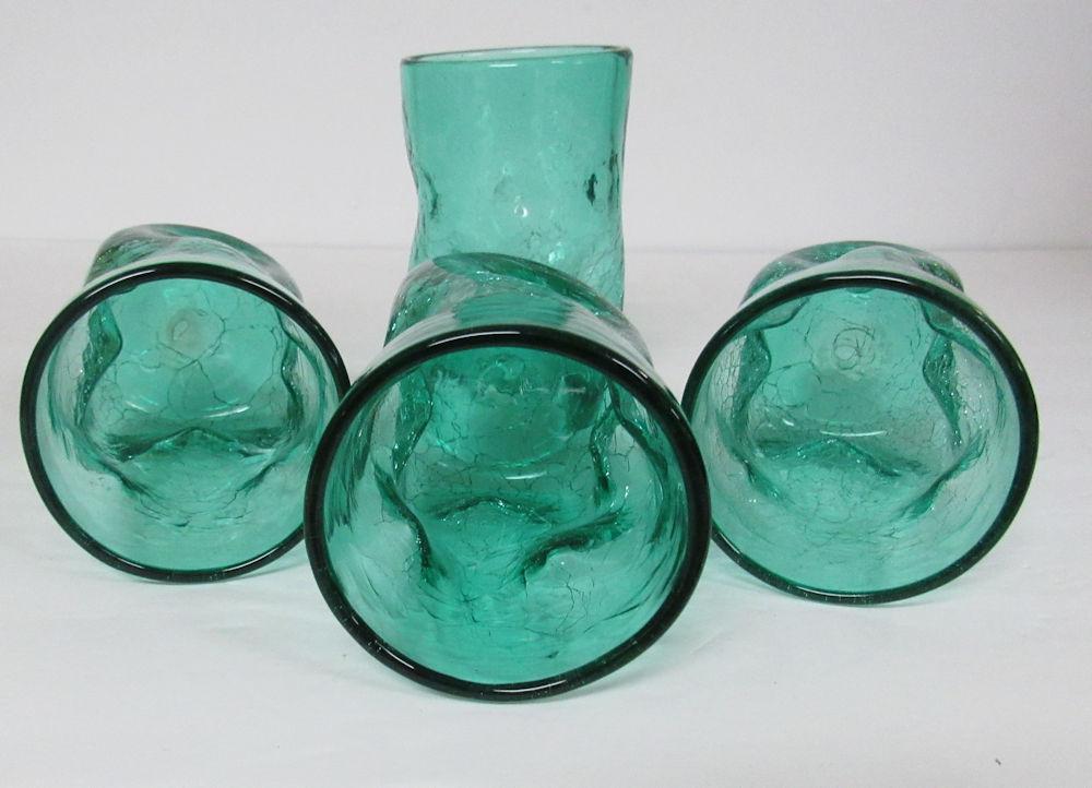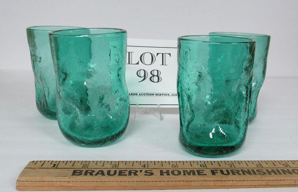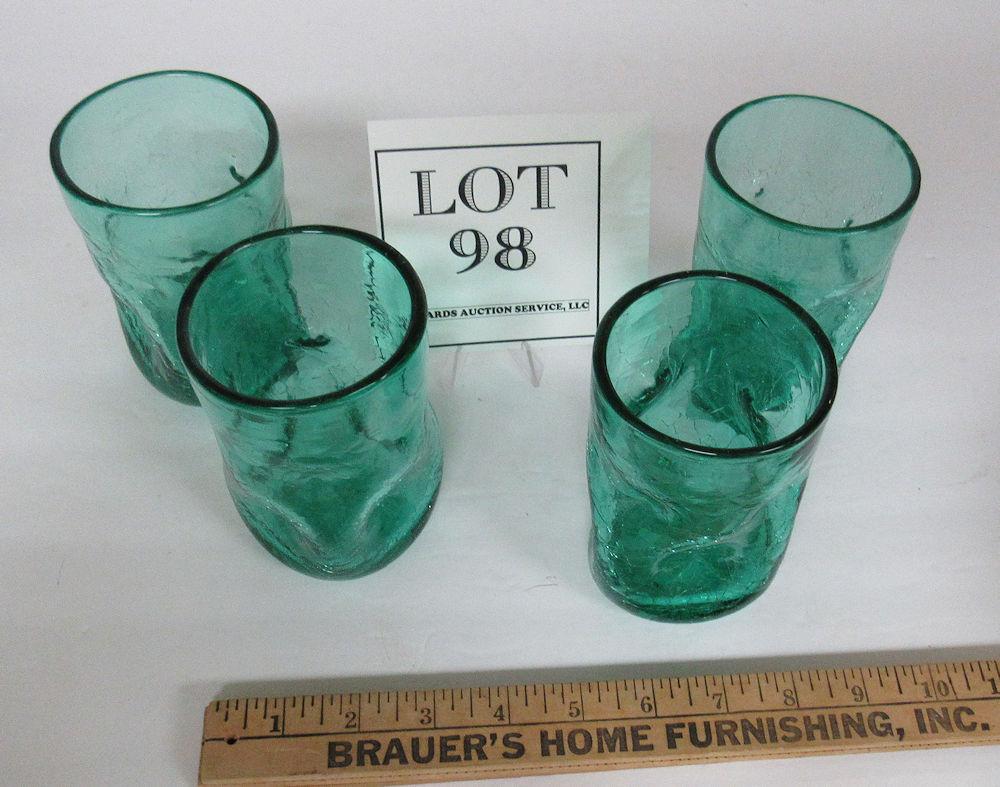 Blenko Set of 4 MCM Teal Crackle Glass Tumblers, Unmarked