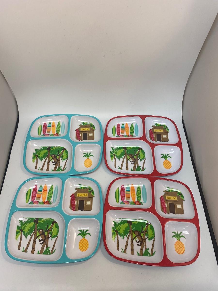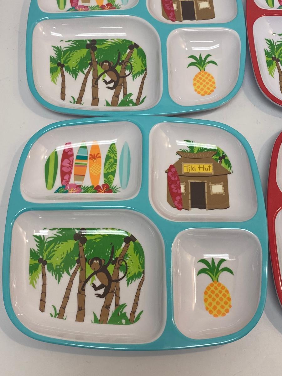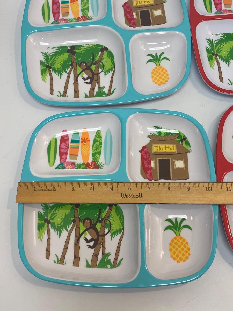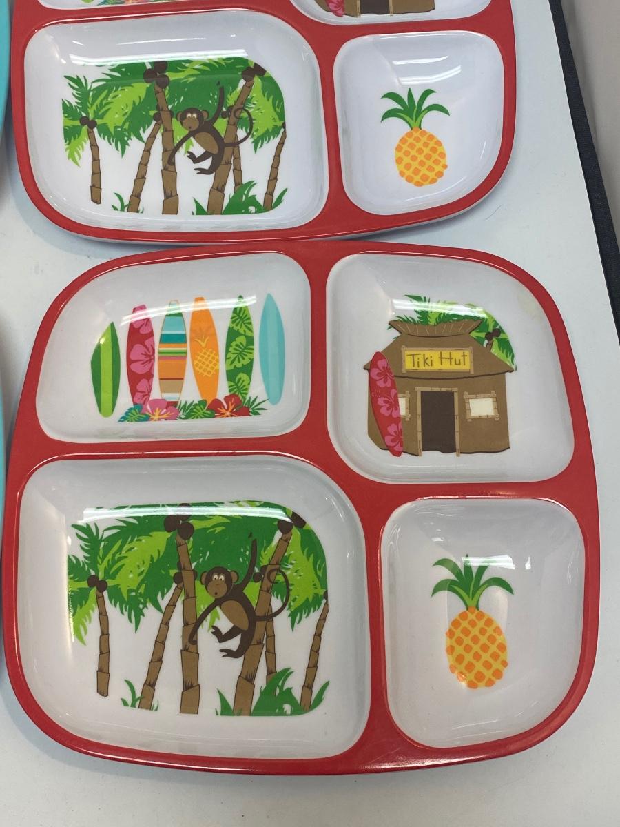 Set of 4 Melamine Divided Kids Tropical Monkey Plates. Good condition, very light wear.