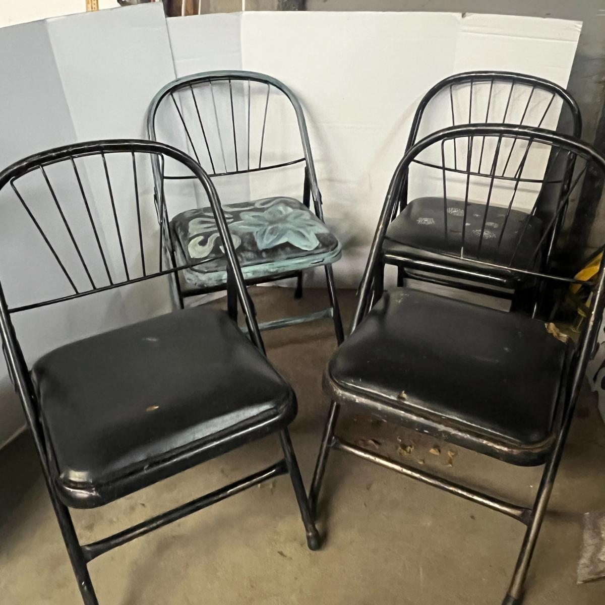 Set of 4 Metal Frame Folding Chairs – Black