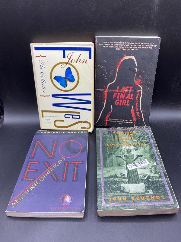 Set of 4 must read books. Previously owned and read condition. Titles include "No Exit", "Midnight in the Garden of Good and Evil", "The Collector", and "The Last Final Girl"