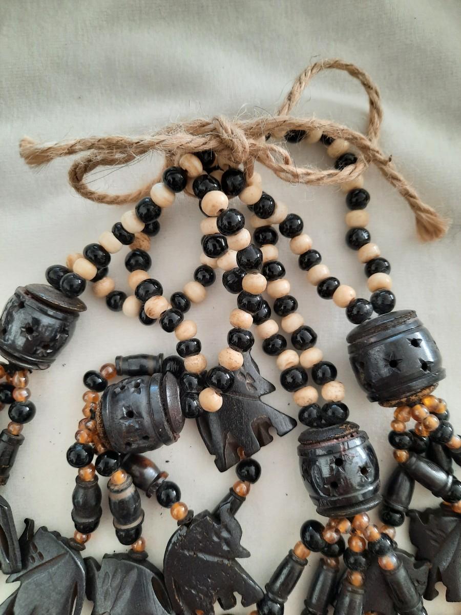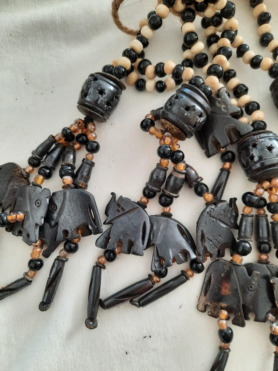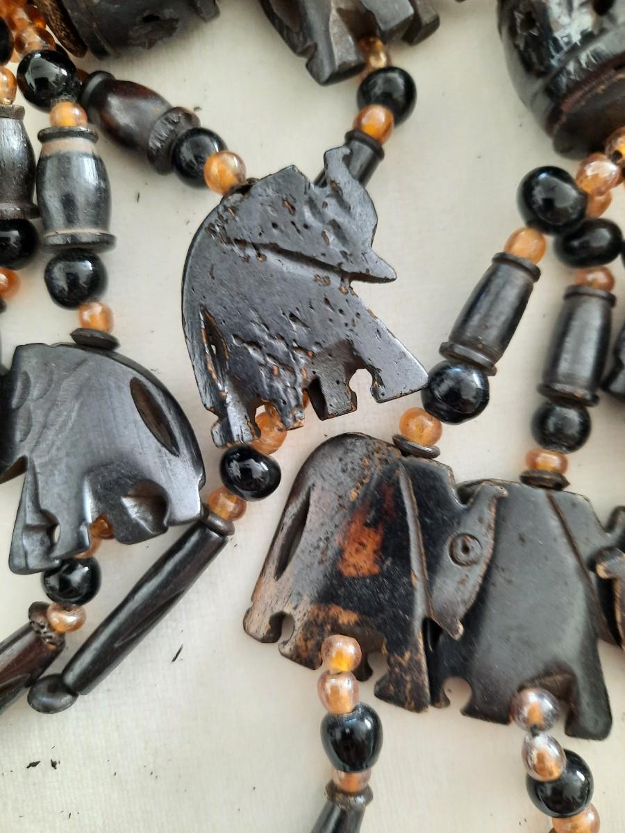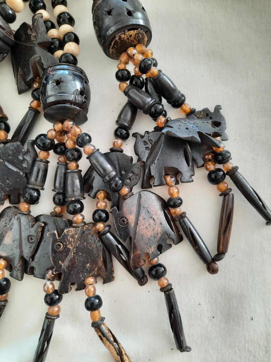 I cant tell if these are wood or stone ir both. Either way, they are very detailed and each one represents a different african animal.