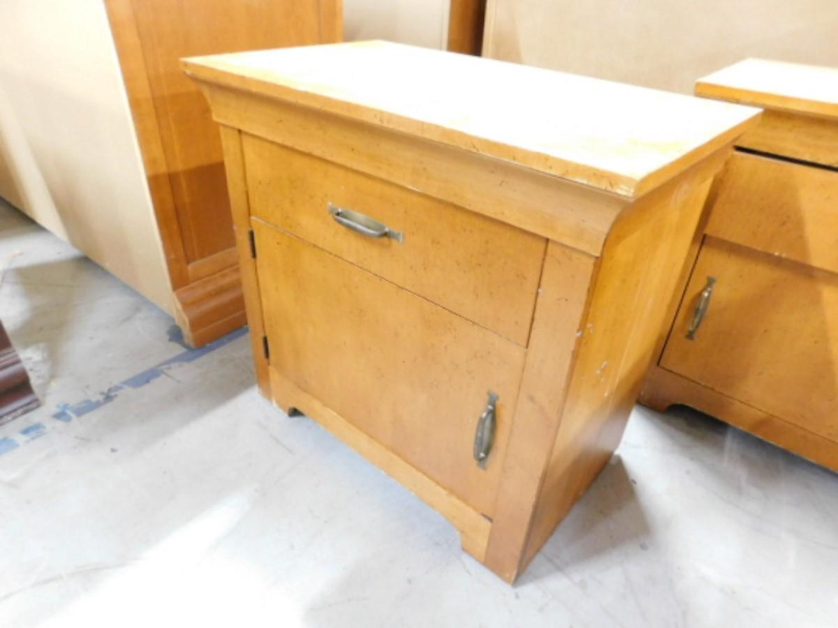 Set of 4 Natural Wood Finish Rustic Design Side Table by American of Martinsville Bidder is buying 4 units. Buying as is condition. May need touching up or minor repairs due to scratches, chips, delamination, or scuffed trim or edges. Expect some wear or scratches to the finish. Shipping option available via freight or local mover at Buyer's expense. Buyer must have all shipping scheduled within the stated dates and times of pickup. Recommended local mover is Beaty Bros. Moving 828-201-2982