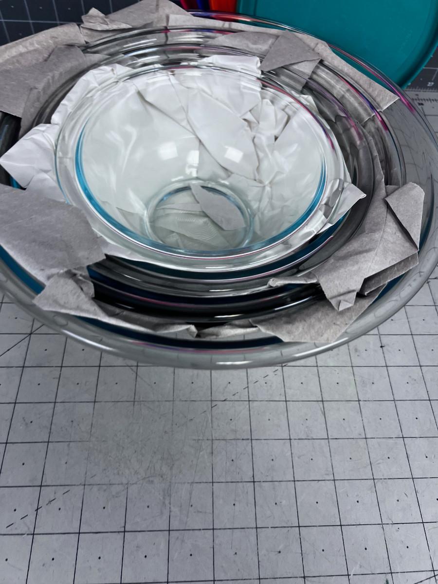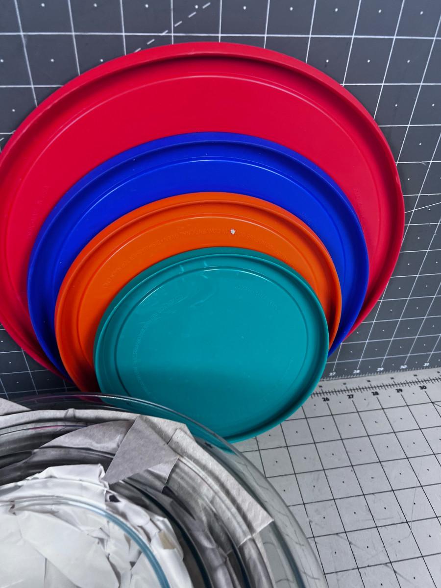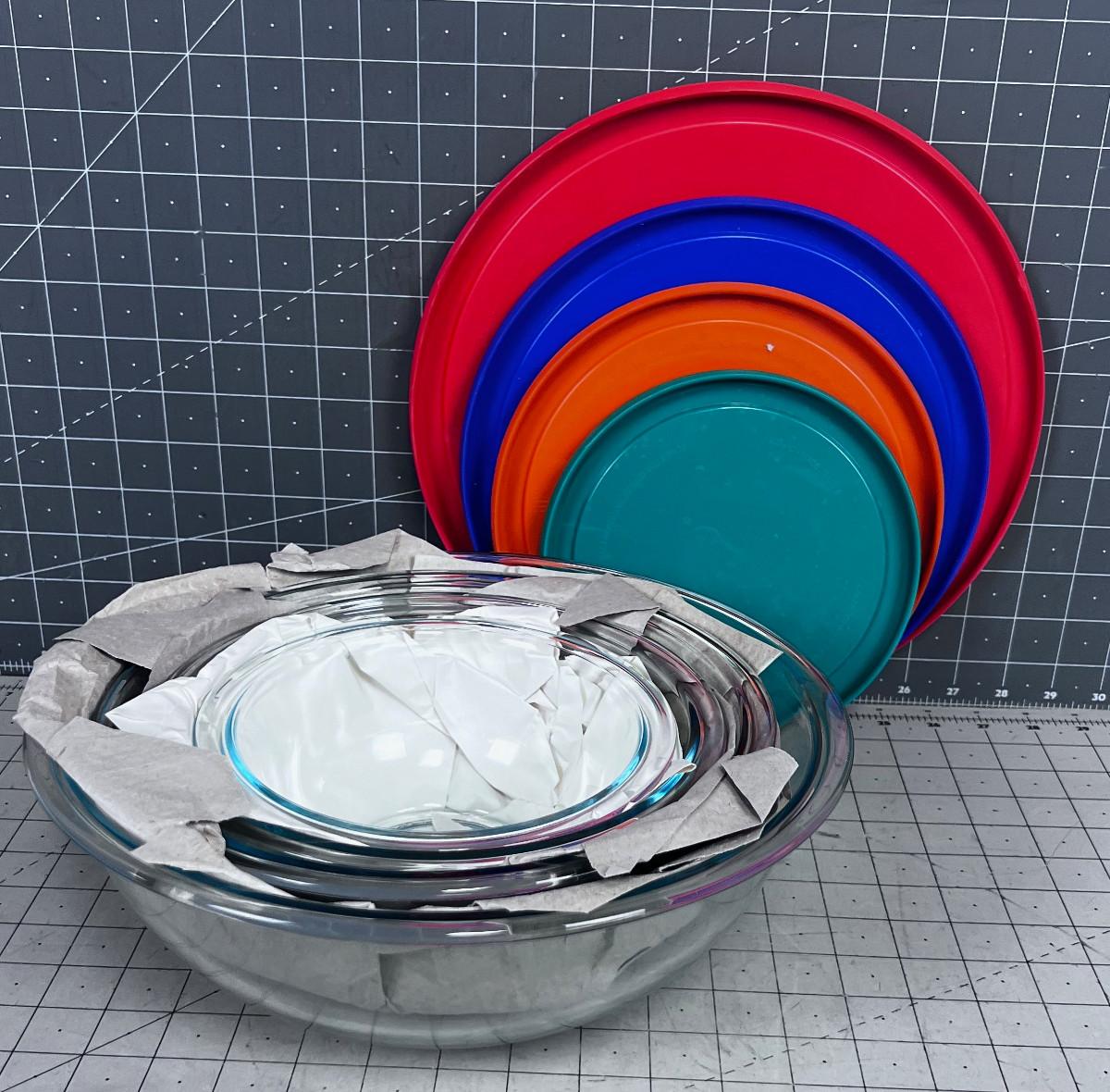 Set of 4 Nested BOWLS PYREX 1,2,3,4 Quarts with Lids. New