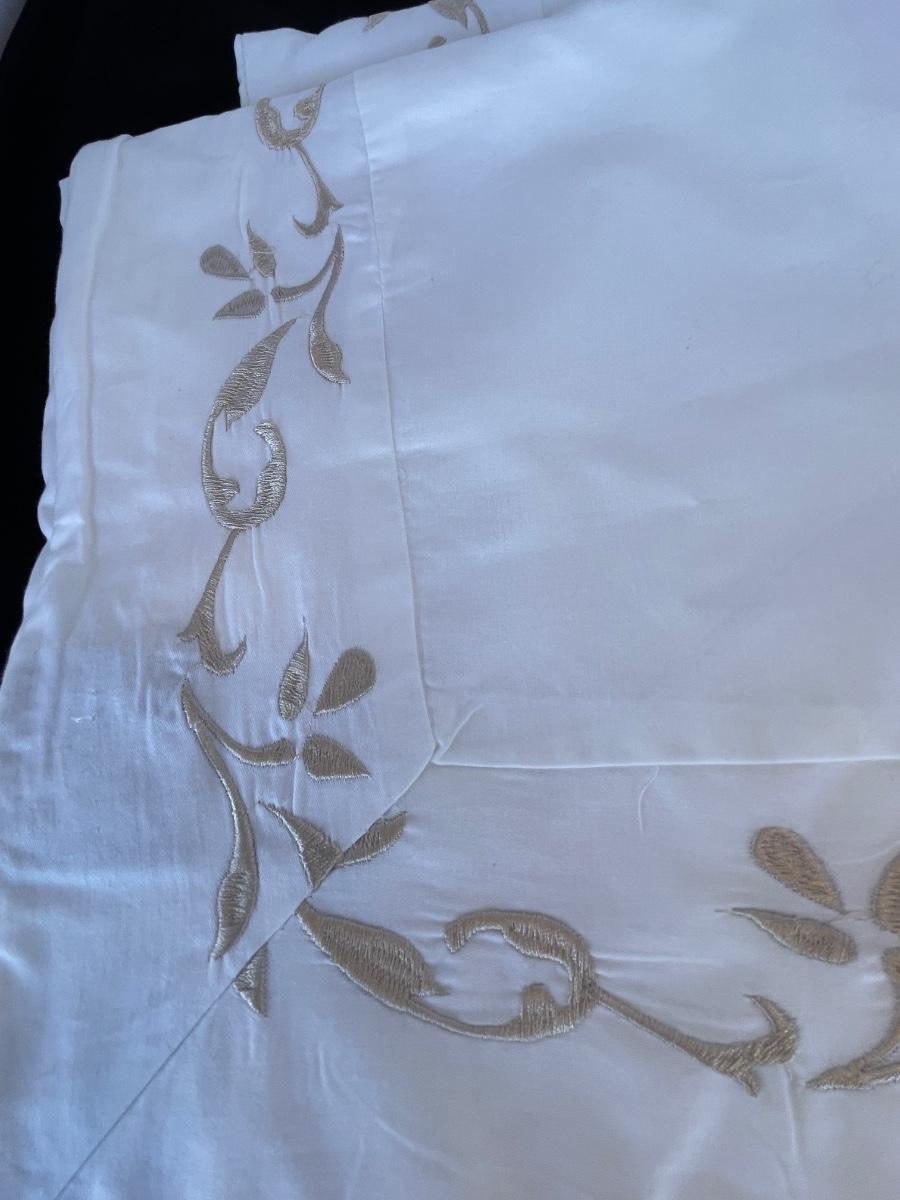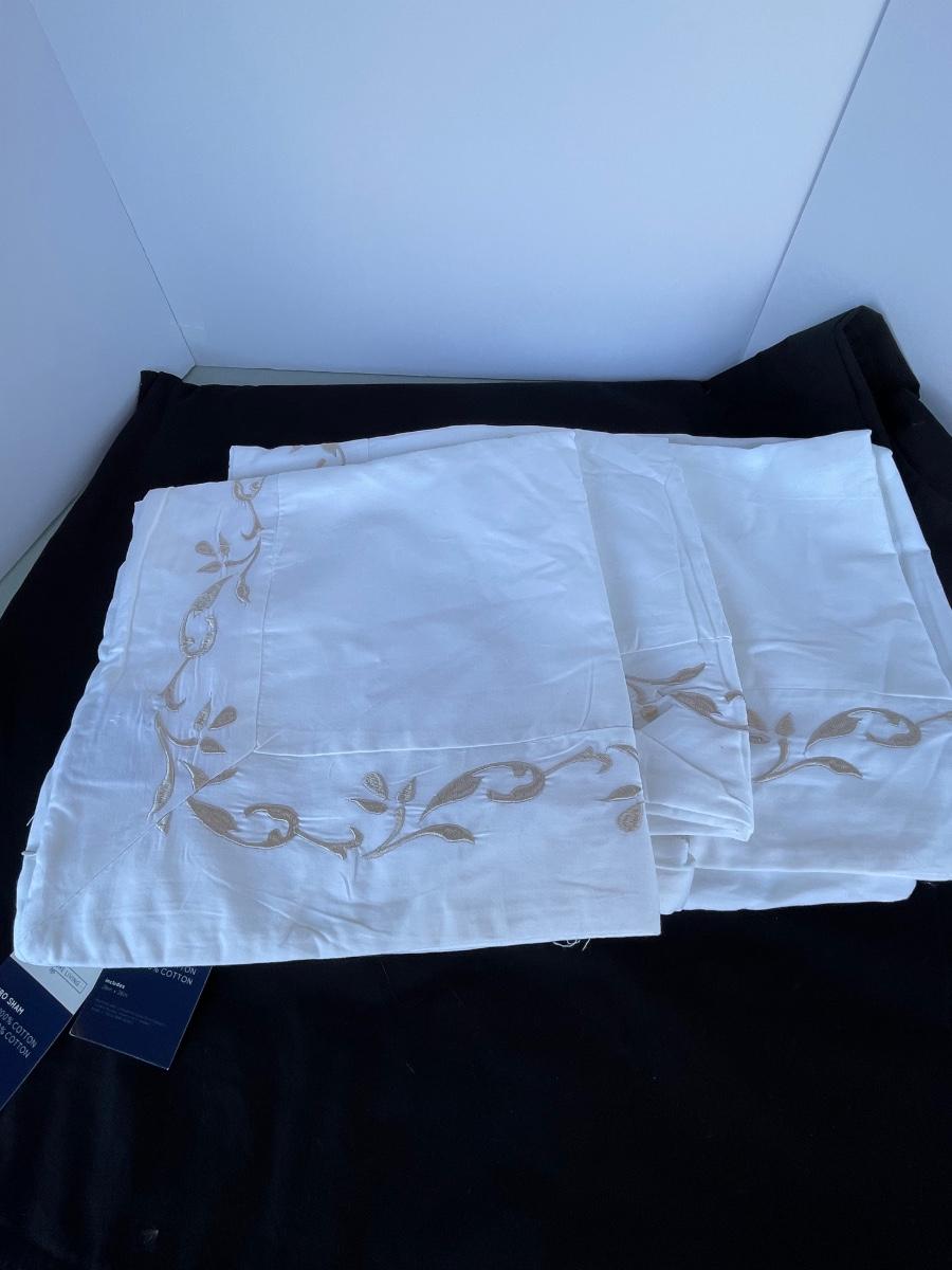 White with taupe embroidery