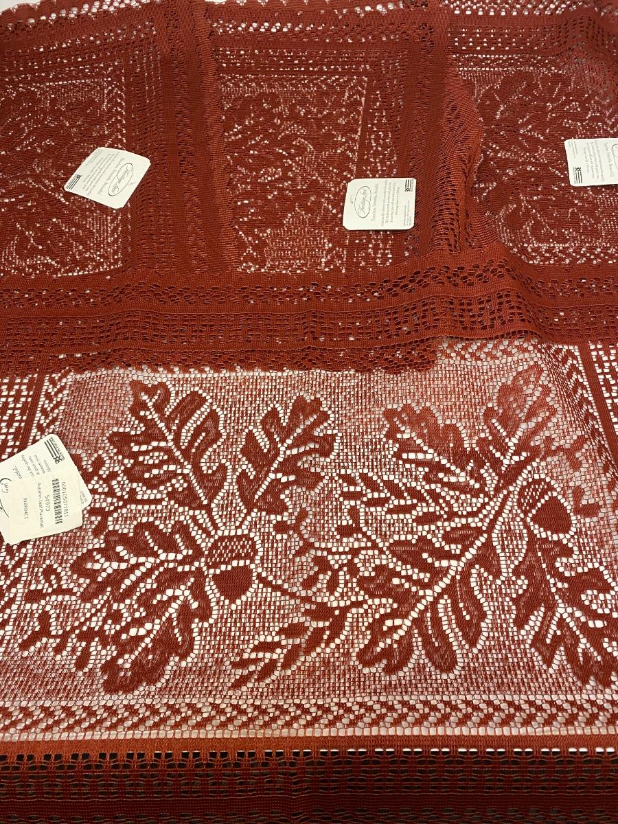 Set of 4 New with Tags Dark Red Oak Leaf Acorn Pattern Lace Placemats