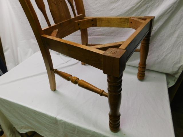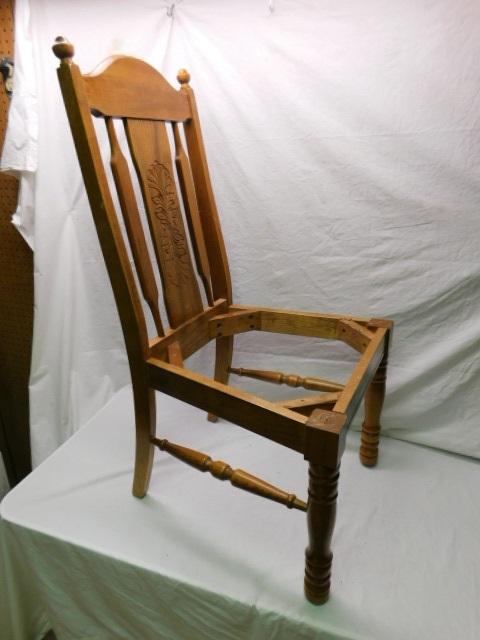 Set of 4 Oak Dining Chairs 2 with Arms Ready for New Upholstered Seats. Wood frame available for seats but no upholstery.