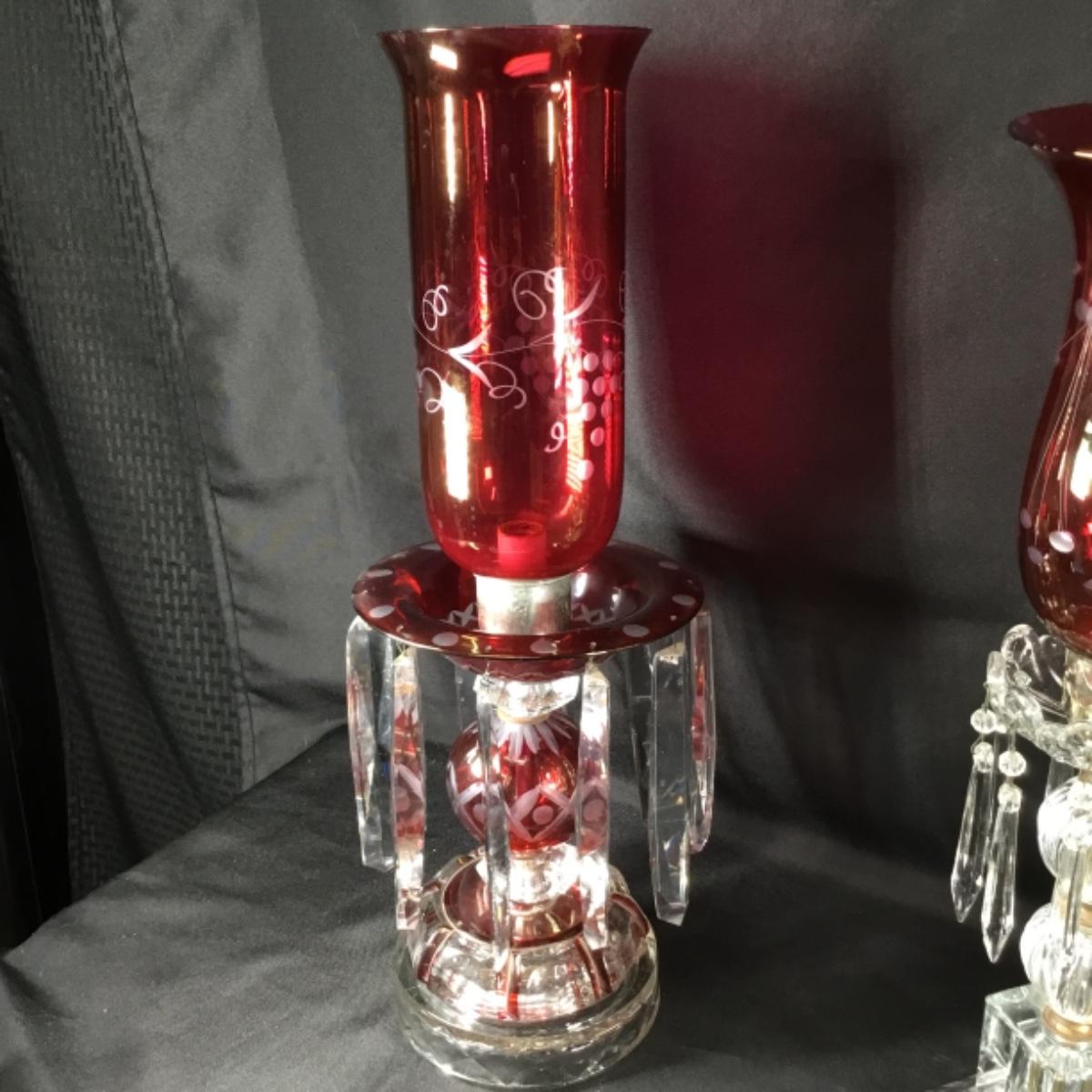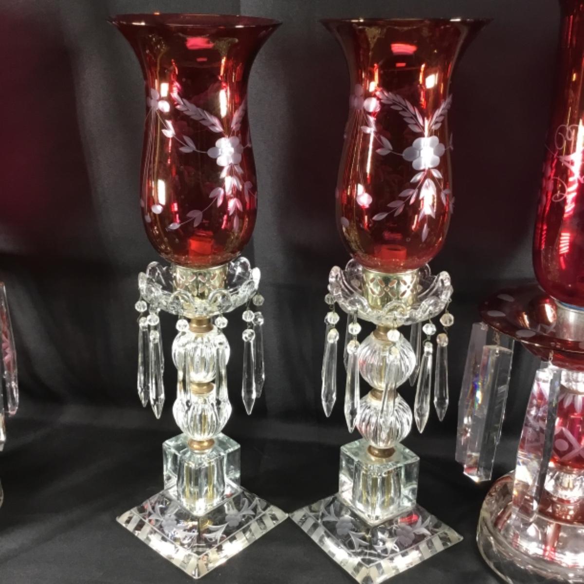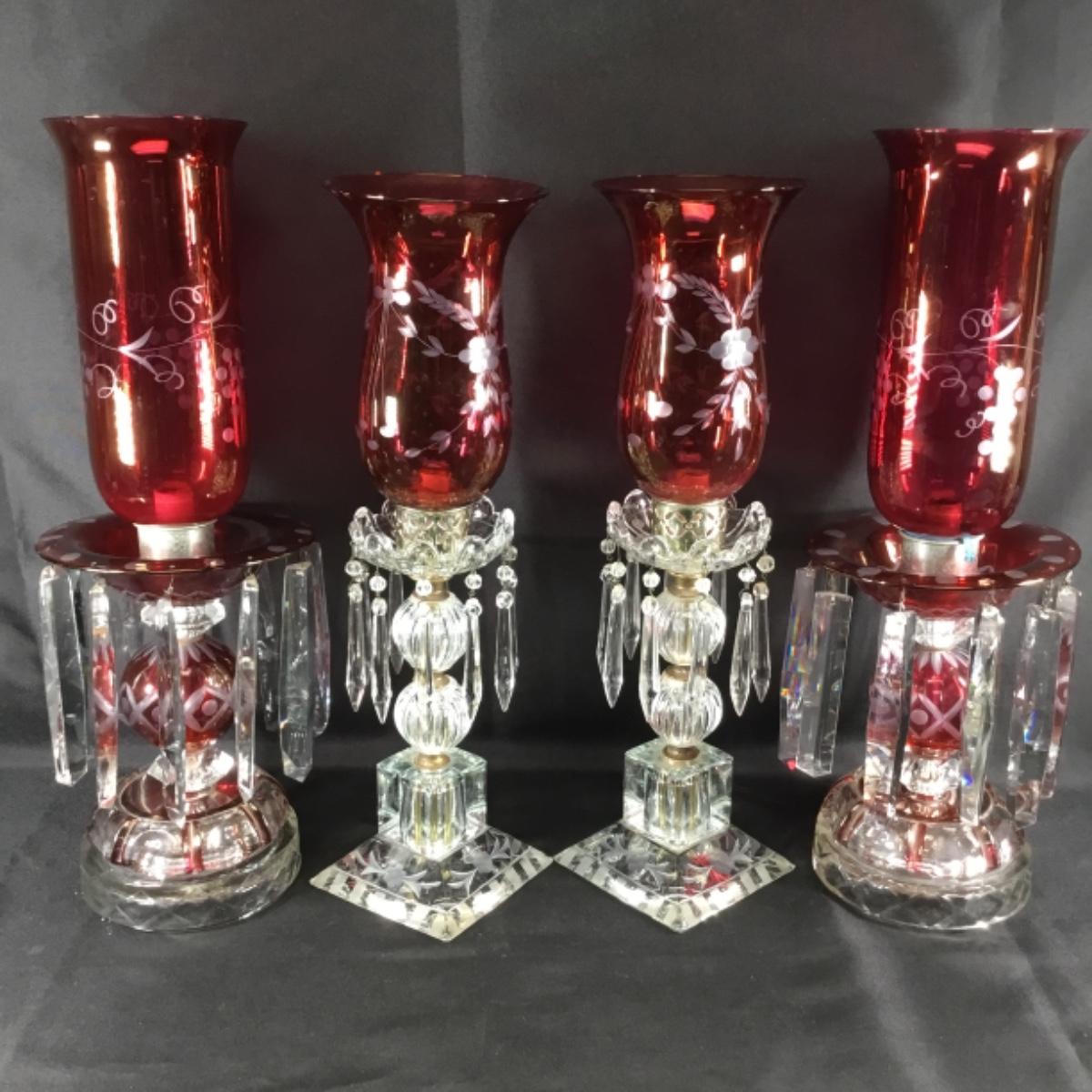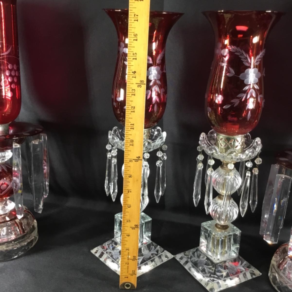 Set of 4 Cranberry to Clear Ornate Crystal Lamps Candle Holders