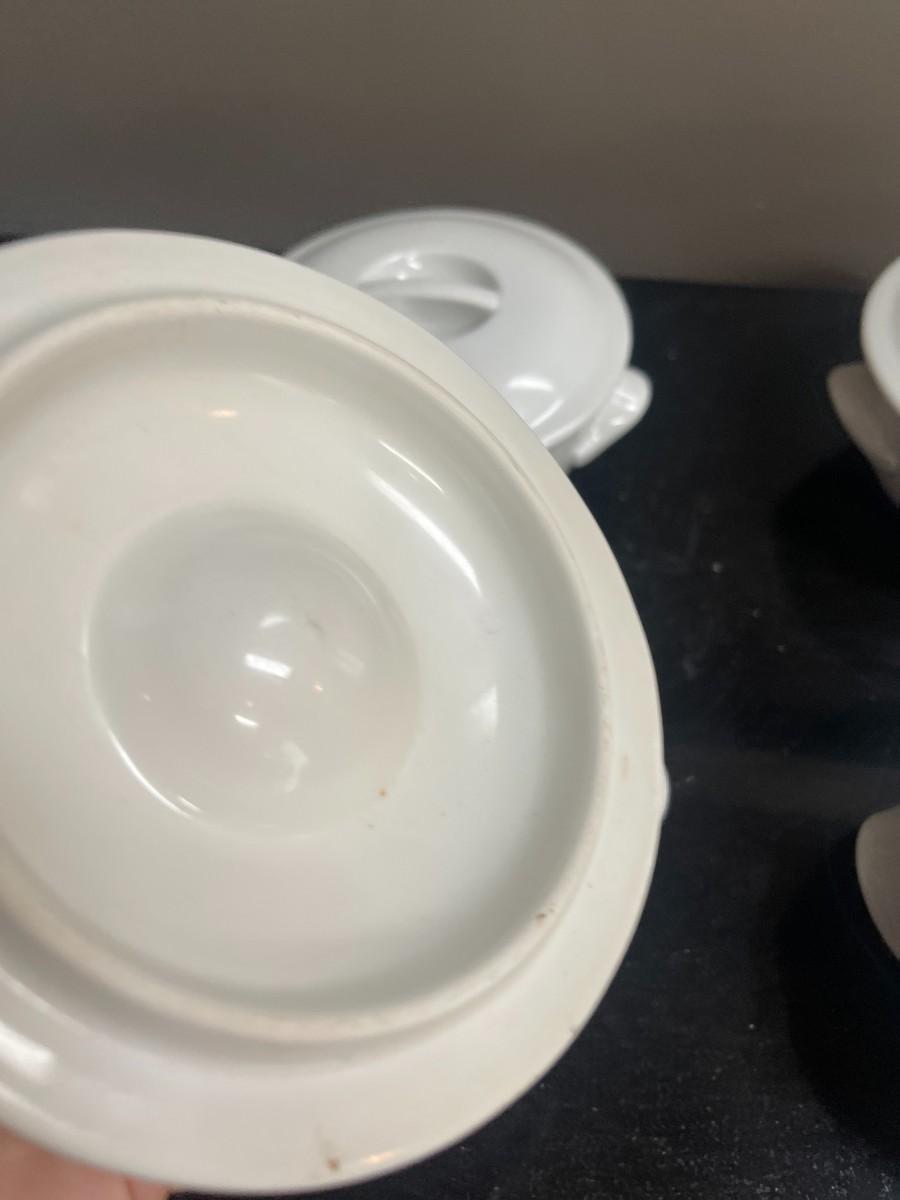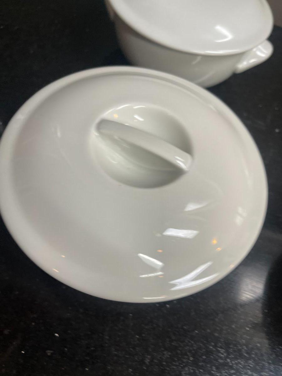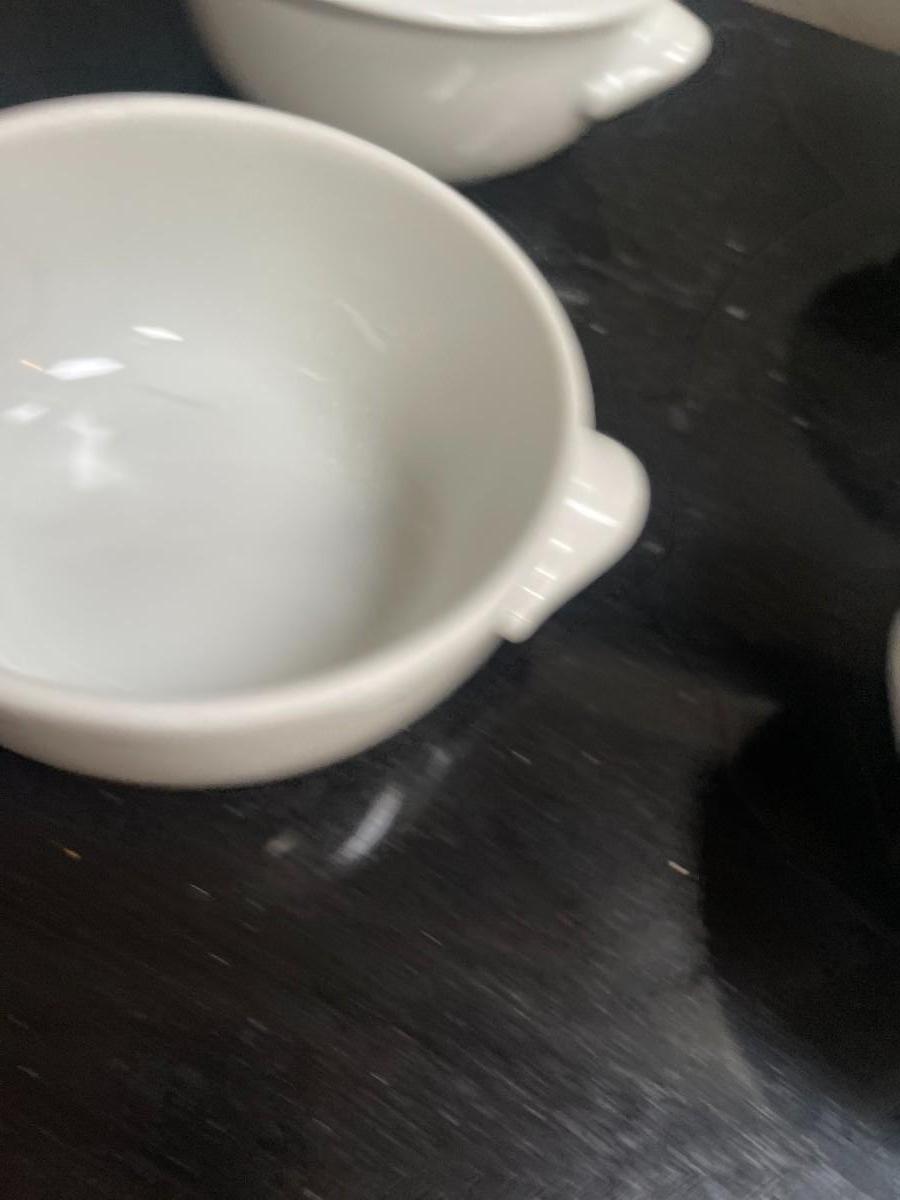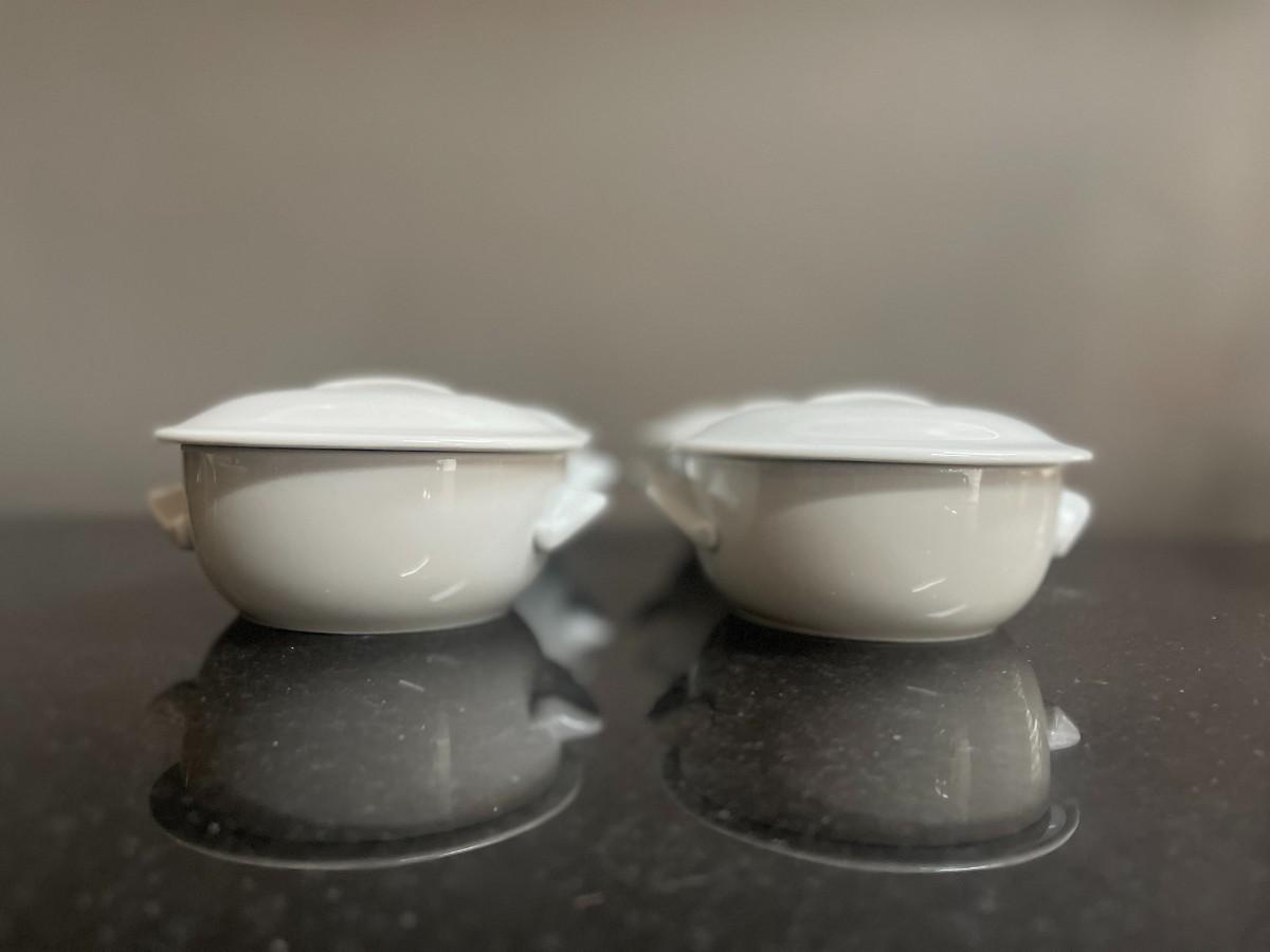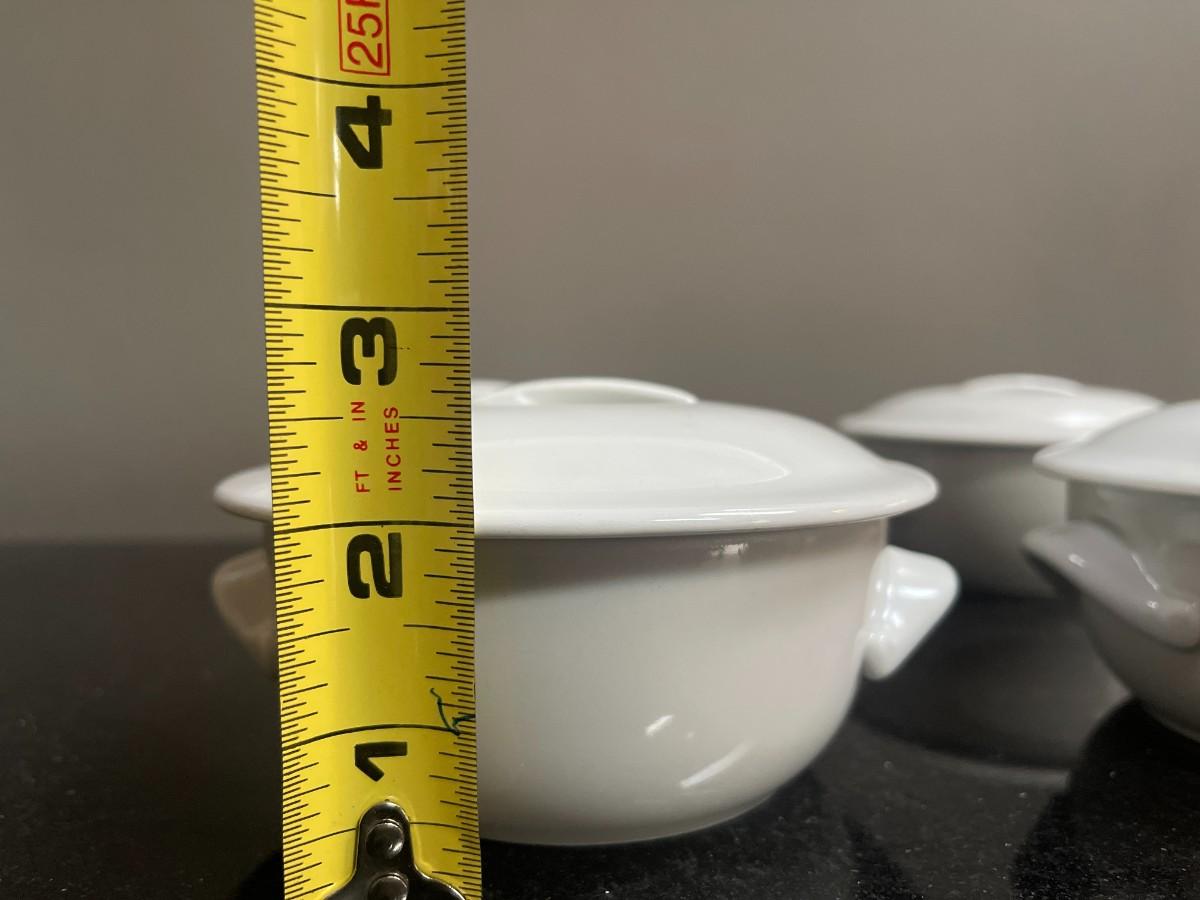 Set of 4 Pillivuyt White Covered Handled Porcelain Soup Bowls. Just for reference a set of 4 classic onion soup bowls by Pillivuyt retails for $152.